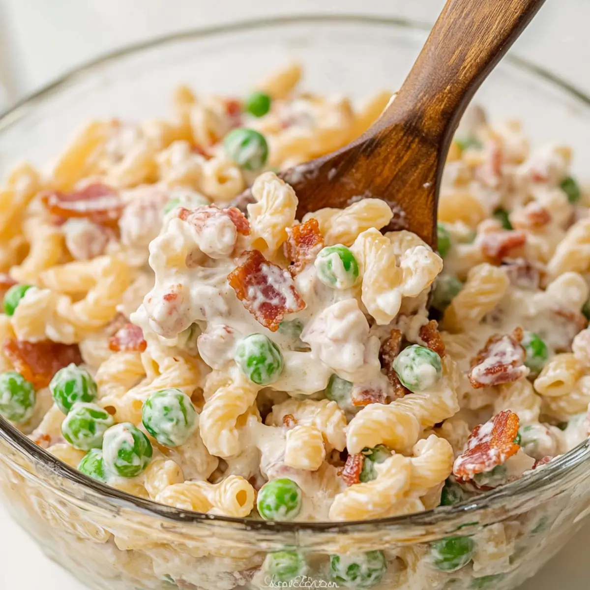 Creamy, Dreamy Texture: The blend of ranch dressing, Greek yogurt, and cheeses creates a luscious base that’s perfectly complemented by crunchy bacon and sweet peas.