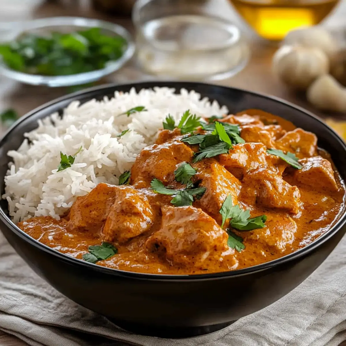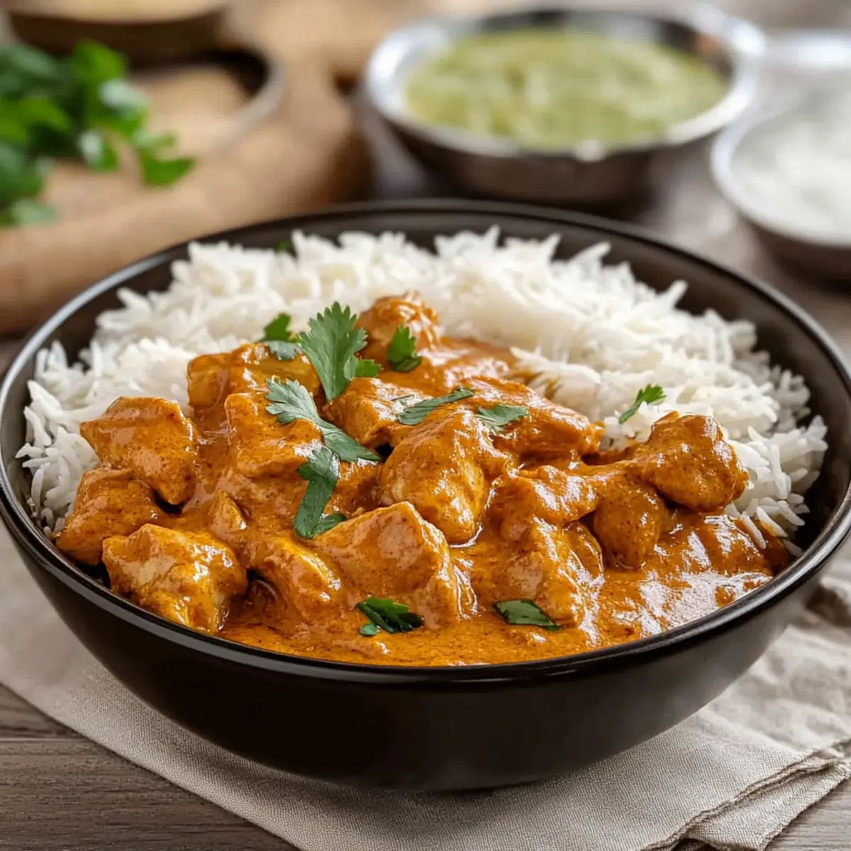 Remove from heat and garnish your creamy Butter Chicken with fresh cilantro. Serve this delightful dish over your choice of the best rice for Butter Chicken—whether it’s aromatic Basmati, hearty Brown Basmati, or floral Jasmine rice—for a truly satisfying meal. Each bite will take you on a flavorful journey!