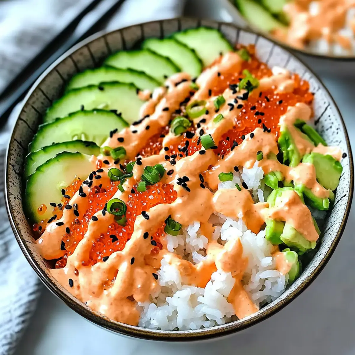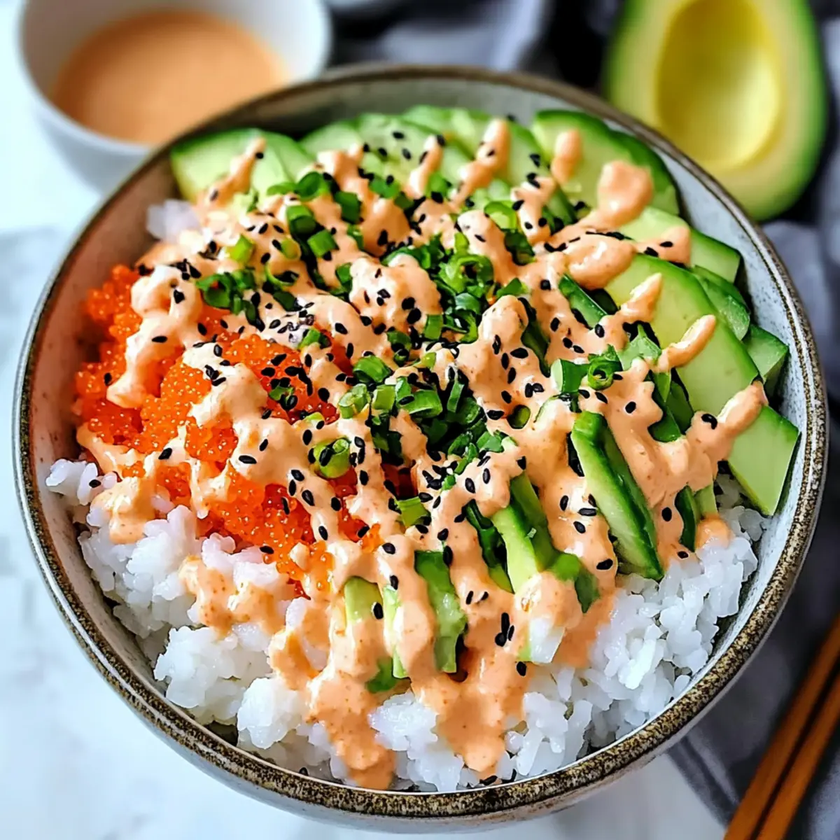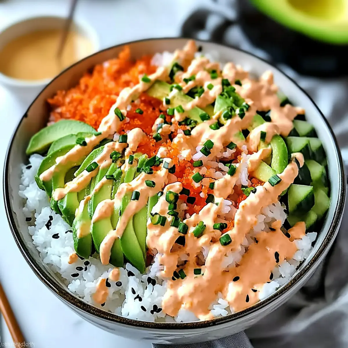 Preparation: For best results, prepare fresh vegetables right before serving to enjoy their crispness and vibrant flavors in your California Roll Sushi Bowls.