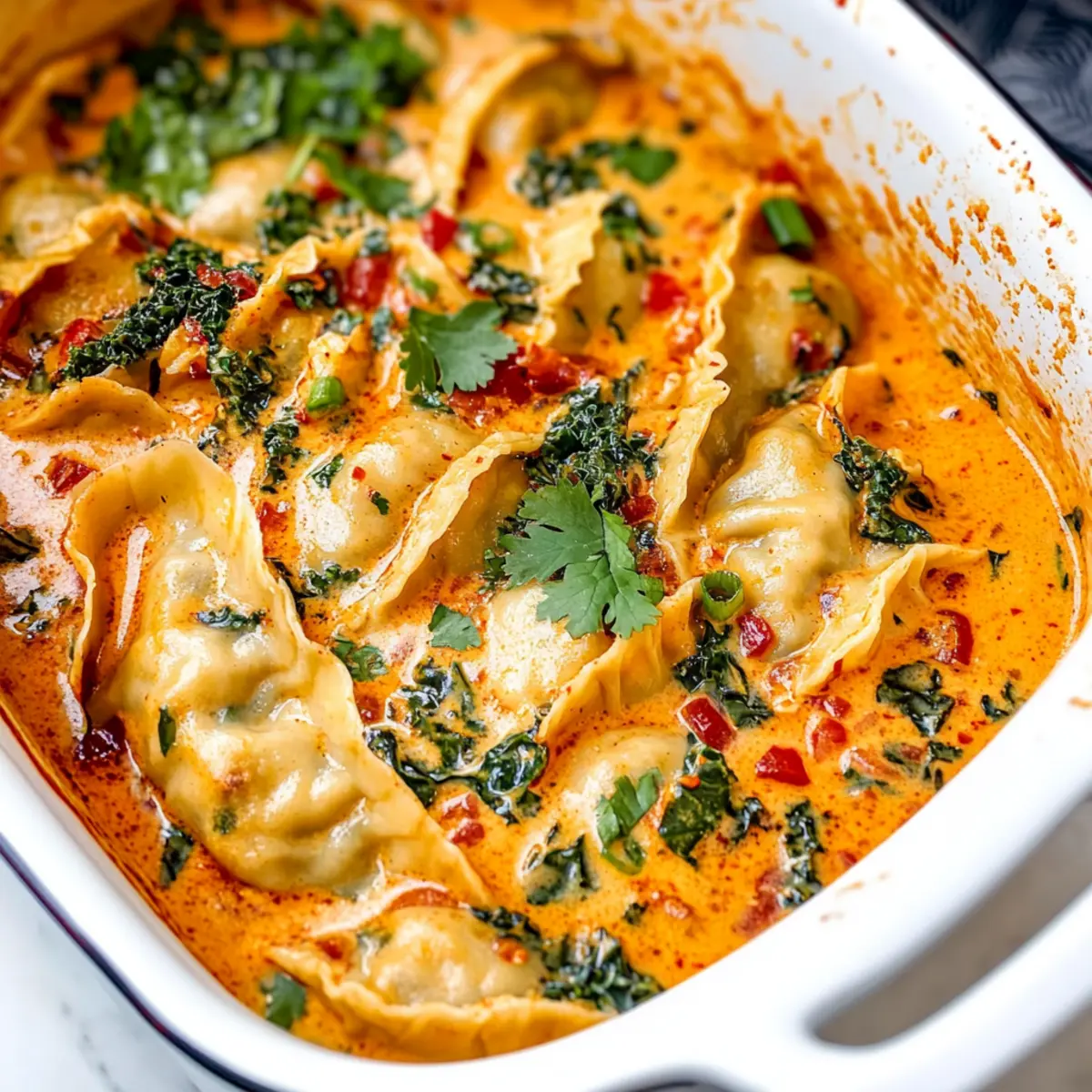 Vegan Baked Dumplings in Savory Red Curry Sauce Delight