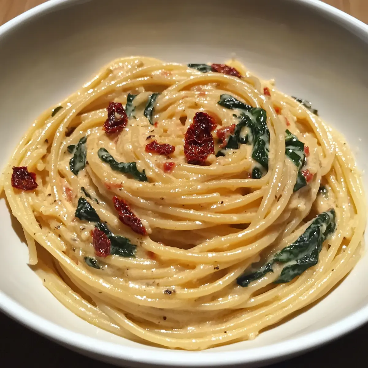 Creamy Spaghetti & Spinach with Sun-Dried Tomato Magic