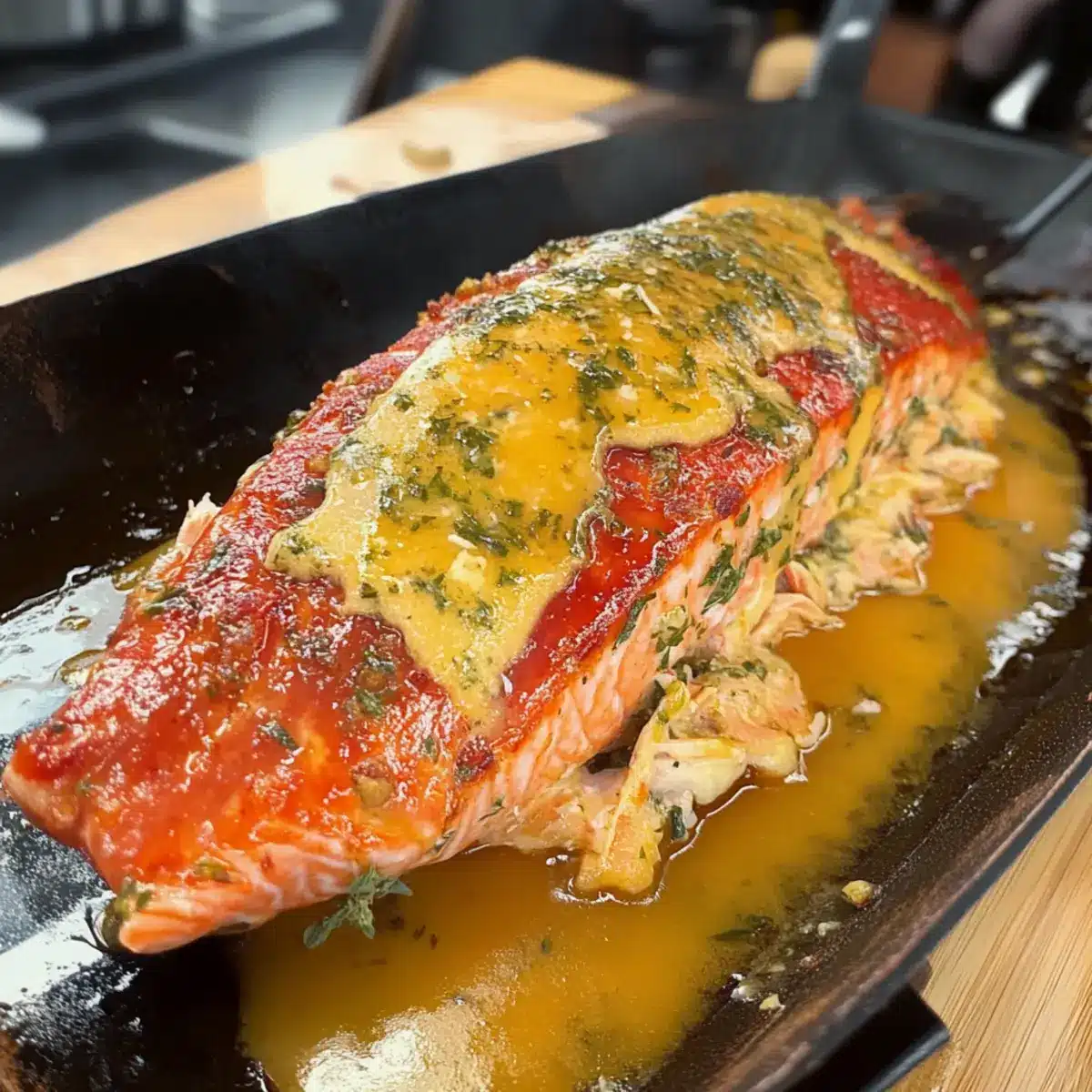 Smoked Crab Stuffed Salmon with Honey Herb Butter Sauce Delight