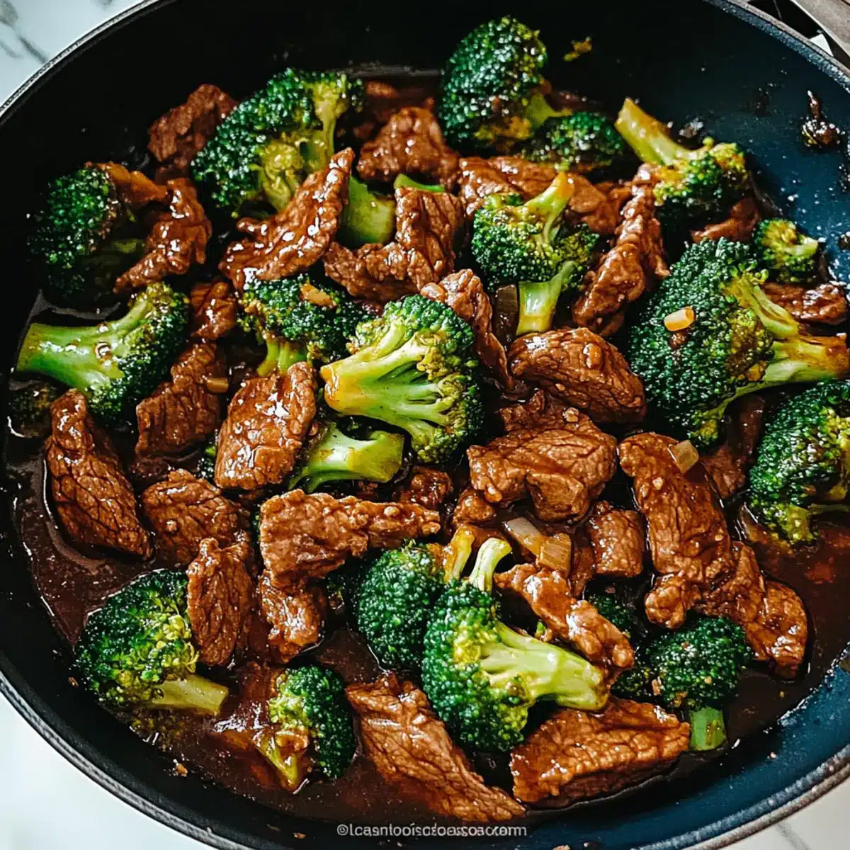 Return the steamed broccoli to the skillet, and pour in the prepared sauce. Toss gently to coat both the beef and broccoli evenly. Cook for about 1 minute until the sauce thickens slightly and bubbles, creating a glossy finish that clings beautifully to the ingredients.