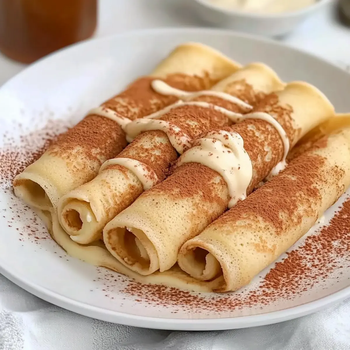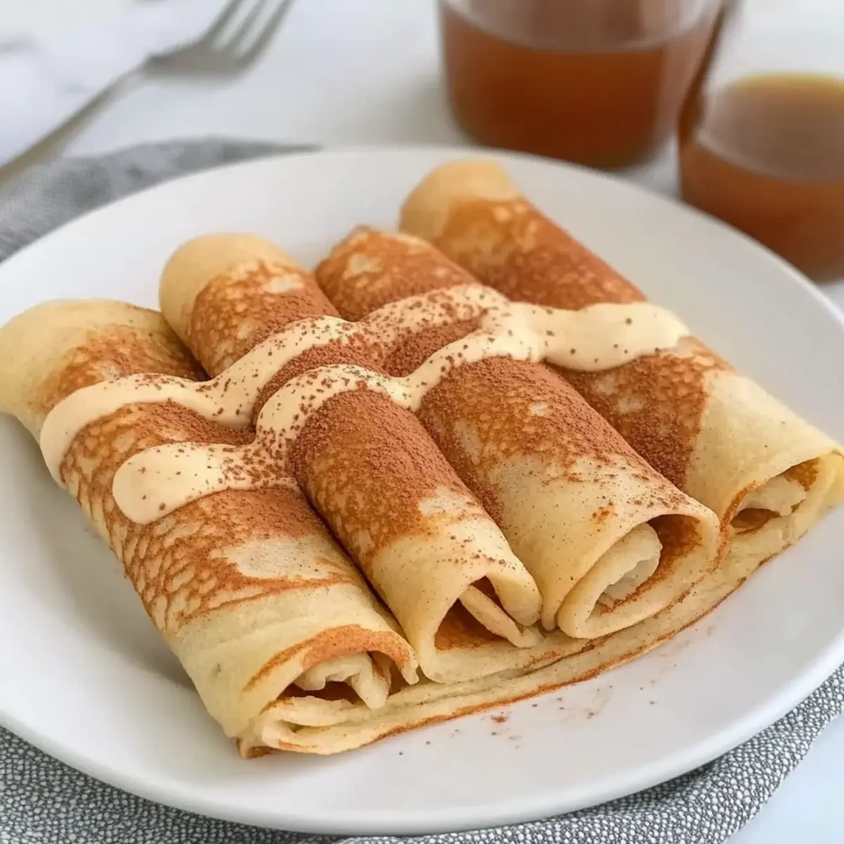 Try topping your crepes with fresh fruit like strawberries or bananas for a burst of natural sweetness and added fiber that contrasts perfectly with the cinnamon filling. -