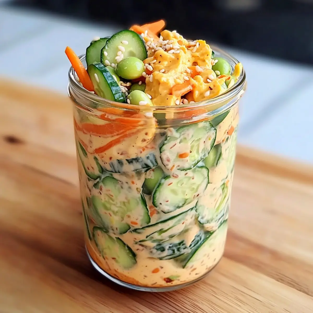 - Shake Well: Remember to shake the jar gently before serving to rediscover the creamy dressing, ensuring an even coating of flavor throughout the Creamy Asian Cucumber Salad Bowl.