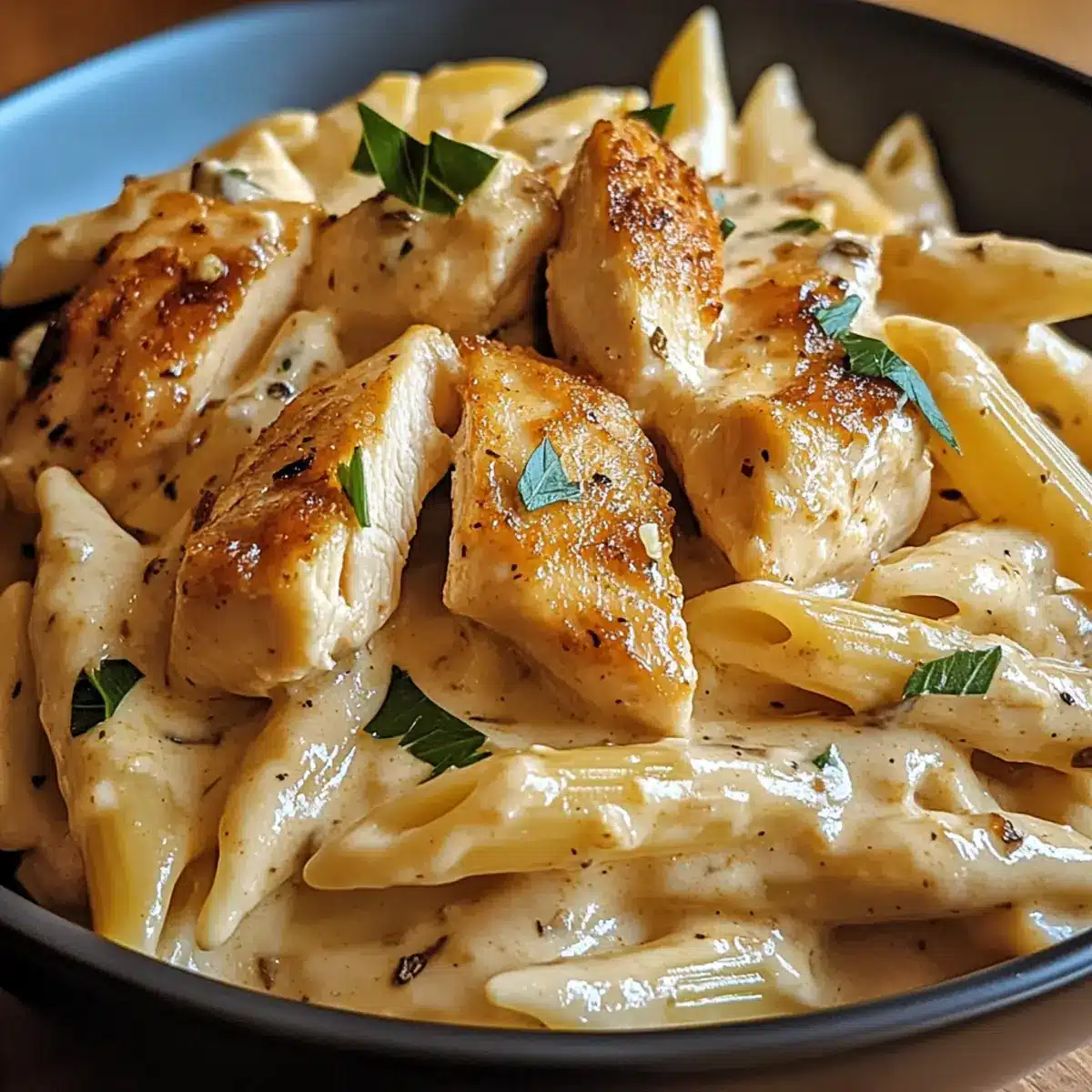While the chicken rests, bring a large pot of salted water to a boil. Add your choice of pasta—penne, fettuccine, or spaghetti—and cook according to package instructions until al dente, usually around 8-10 minutes. Before draining, reserve about 1 cup of the pasta cooking water to adjust the sauce later. Drain the pasta and set it aside, ensuring it’s ready to be enveloped by the rich sauce.