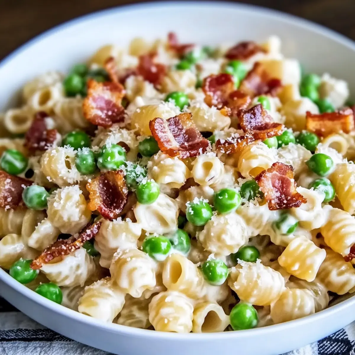 As I strolled through the sun-drenched garden, the thought of a refreshing summer gathering filled my mind. Nothing complements a warm day quite like a Creamy Pasta Salad, especially one loaded with crispy bacon and sweet peas. This delightful dish not only serves as a show-stopping potluck favorite but is also wonderfully customizable, ensuring every bite is tailored to your taste. The balance of creamy dressing with vibrant ingredients makes it a hit among kids and adults alike. With minimal prep and a make-ahead option, it’s the perfect side to elevate any barbecue or picnic. Ready to dive into a bowl of deliciousness? Let’s get started on creating the ultimate summer side that everyone will love!