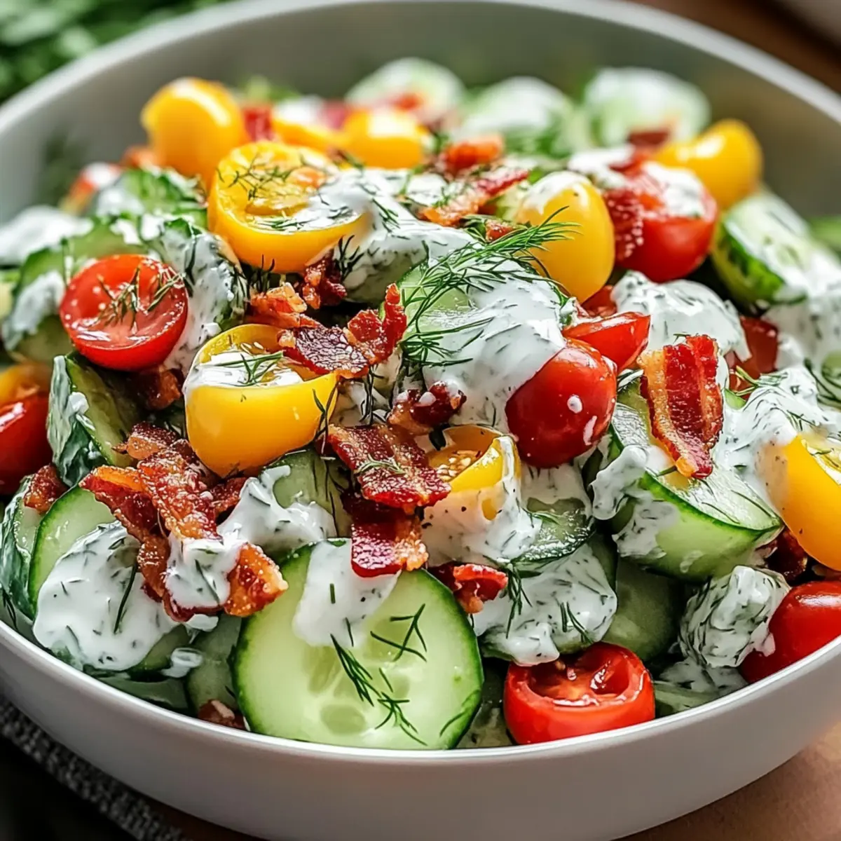 These Cucumber Ranch Crack Salad preparations are perfect for busy home cooks who want to save time! You can slice and salt the cucumbers up to 24 hours in advance to maintain their crispness, just be sure to pat them dry before mixing to avoid a watery salad. Additionally, you can prepare the homemade ranch dressing and refrigerate it for up to 3 days—just mix everything but the cucumbers, bacon, and cheese to keep them fresh. When you’re ready to enjoy the salad, simply toss the prepped ingredients together, add the chilled dressing, and fold in the herbs for a delightful, easy meal!