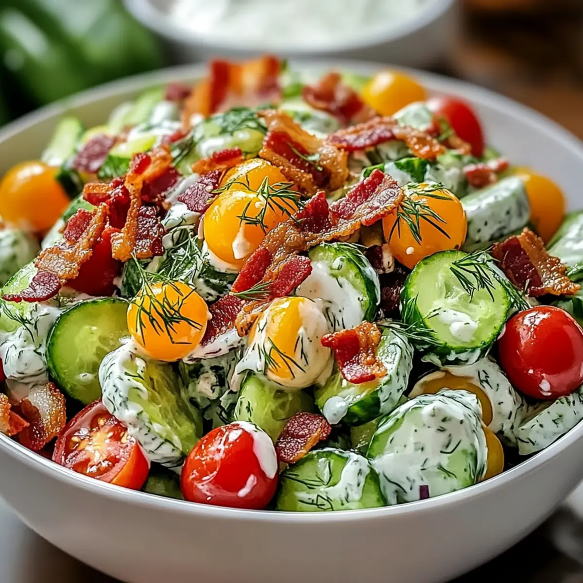 Absolutely! If you’re catering to dietary restrictions, you can easily customize your Cucumber Ranch Crack Salad. For a vegetarian option, replace the beef bacon with turkey bacon or omit it entirely. For those with dairy allergies, consider using plant-based mayonnaise and dairy-free cheese. Always check ingredient labels for allergens!