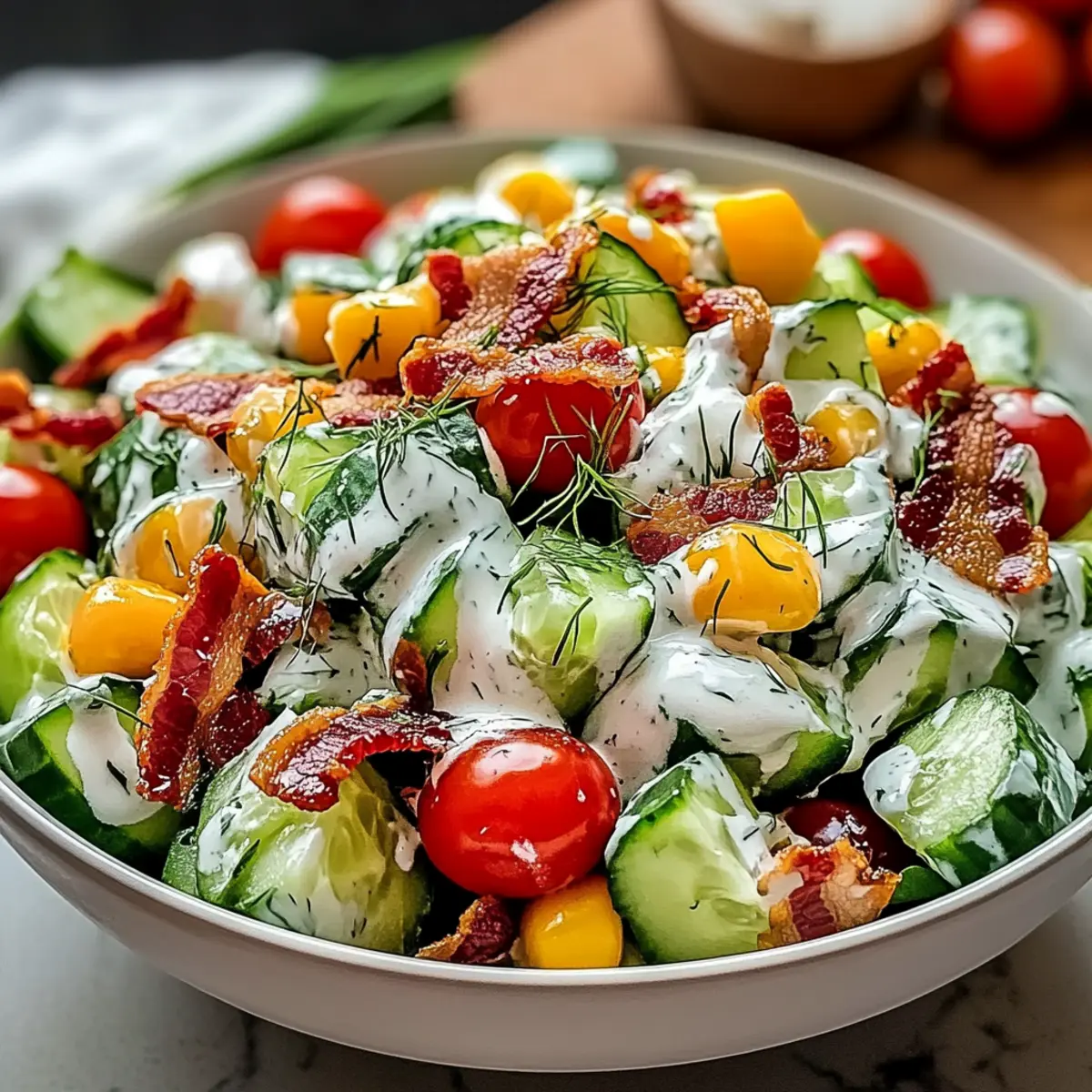 If your Cucumber Ranch Crack Salad turns out too watery, it’s likely from moisture releasing from the cucumbers. To combat this, after slicing the cucumbers, sprinkle them lightly with salt and let them sit for about 10 minutes to draw out excess water. Then, pat them dry with paper towels before adding them to the salad.