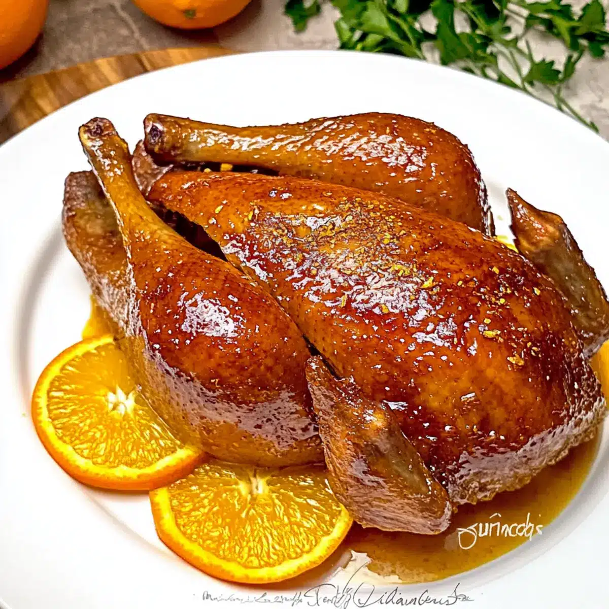 For an extra aromatic touch, consider adding fresh herbs like thyme or rosemary to the sauce as it simmers. This will complement the richness of the duck beautifully! You could also explore using different citrus fruits, such as blood oranges or grapefruits, to create unique flavor profiles. Enjoy the adventure!