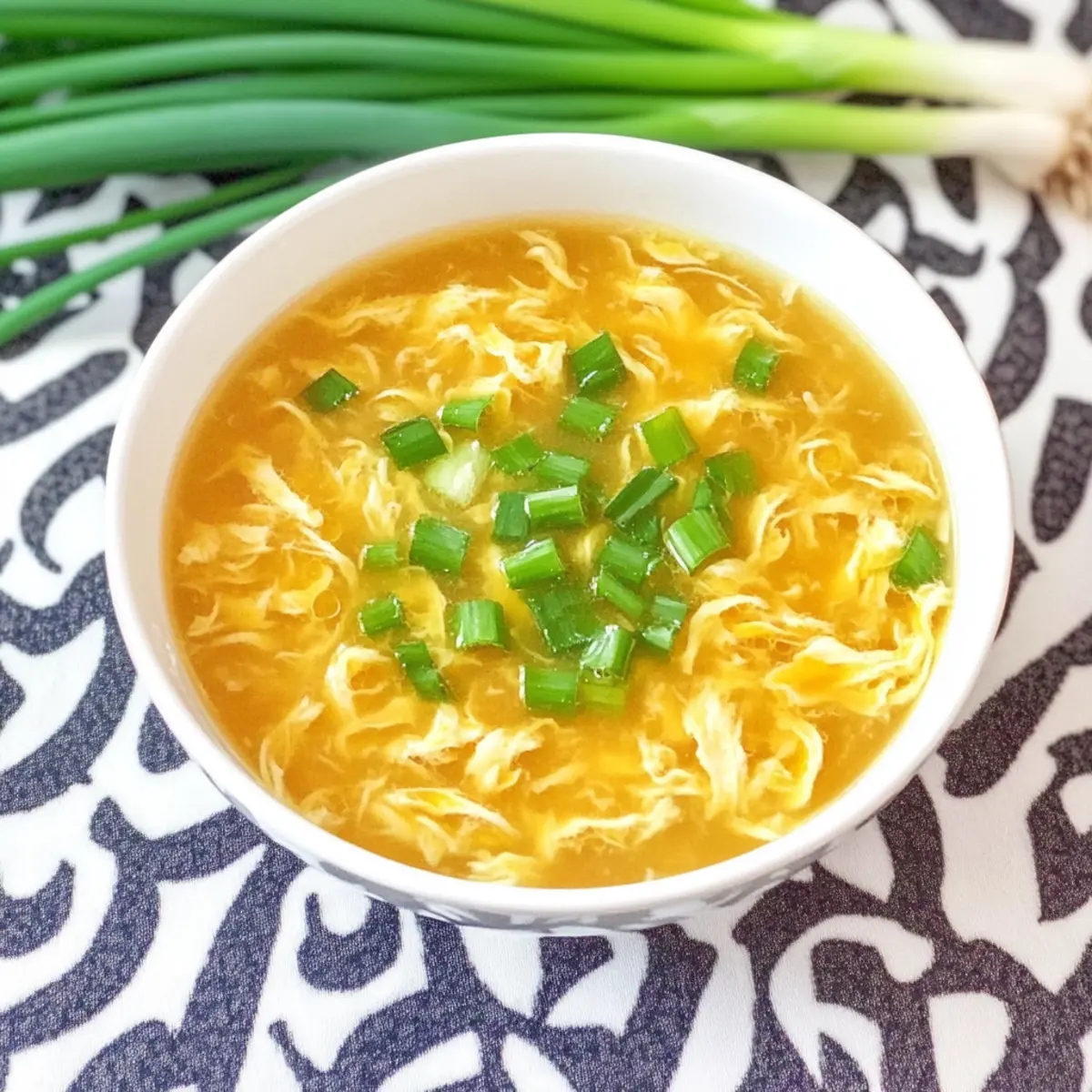 As the rain drizzles softly outside, I’m reminded of the cozy, fragrant bowls of Egg Drop Soup that bring warmth to my kitchen. This quick 10-minute homemade version blends savory chicken stock with silky eggs, transforming a simple meal into a comforting experience reminiscent of our favorite Chinese takeout. Not only is this soup incredibly customizable to suit your taste buds, but it’s also a low-fat, guilt-free choice that satisfies without the greasy takeaway guilt. If you’re ready to embrace a simple yet satisfying dish that can be tailored to your preferences, you’re in for a delightful culinary adventure. What will you add to your bowl?
