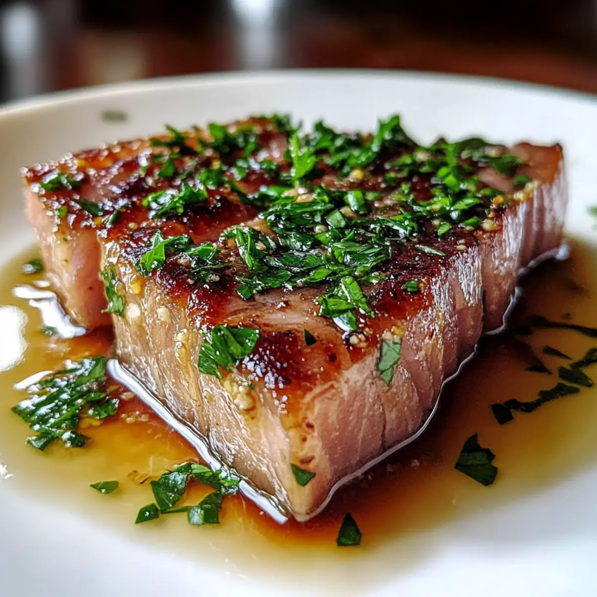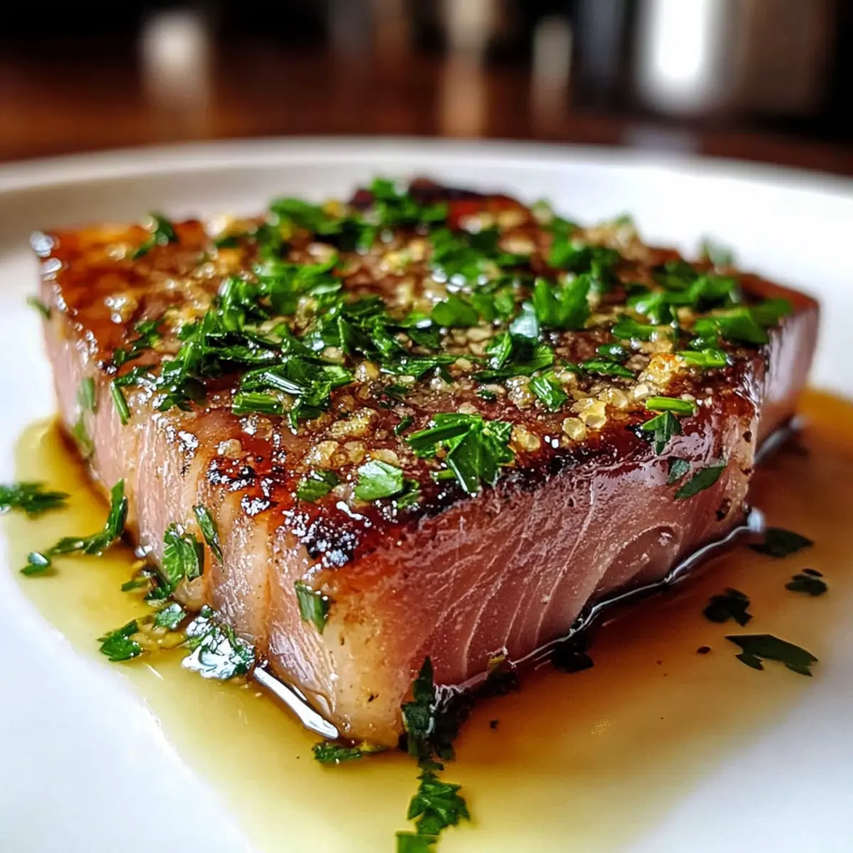 Once your tuna is seared to perfection, carefully remove it from the skillet and let it rest on a plate for a couple of minutes. This resting period allows the juices to redistribute, enhancing the flavor. Finally, sprinkle chopped fresh parsley over the tuna for a vibrant garnish that adds a touch of freshness to your Garlic Butter Ahi Tuna.