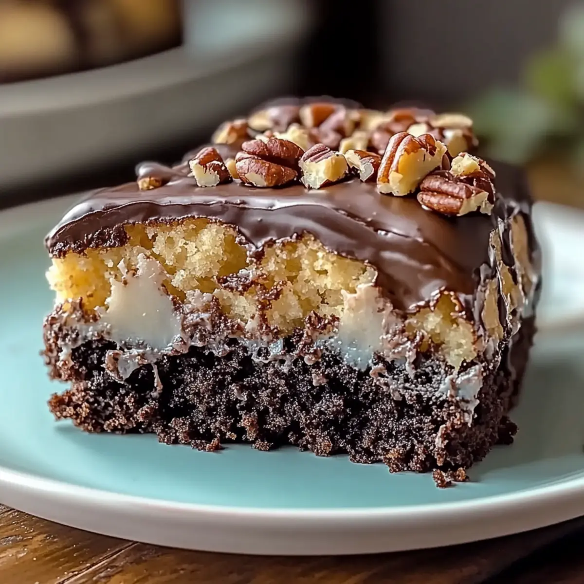 Layered Cake: Transform this poke cake into a layered dessert by splitting the cake into layers after cooling and adding the coconut-pecan mixture between layers, creating a stunning presentation!