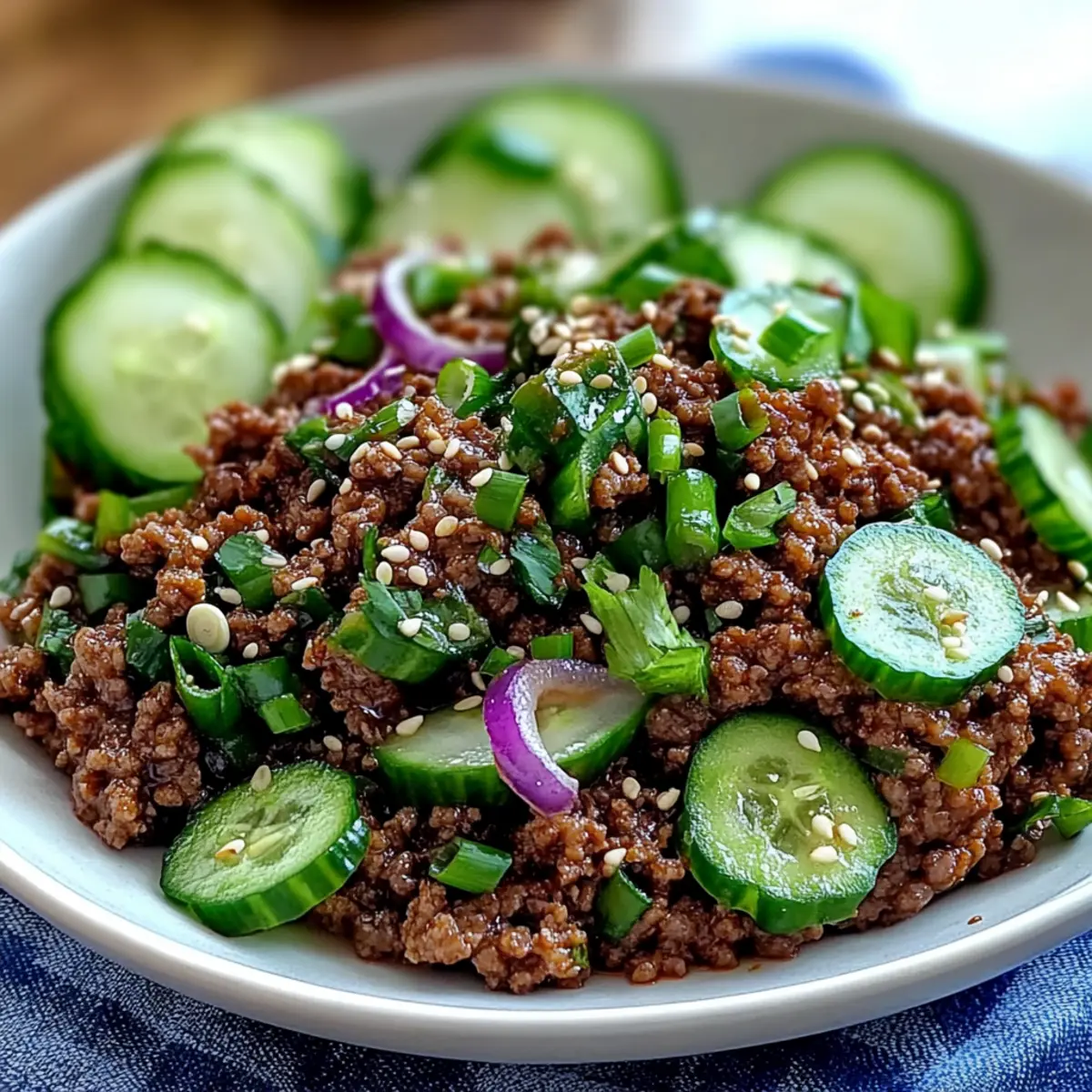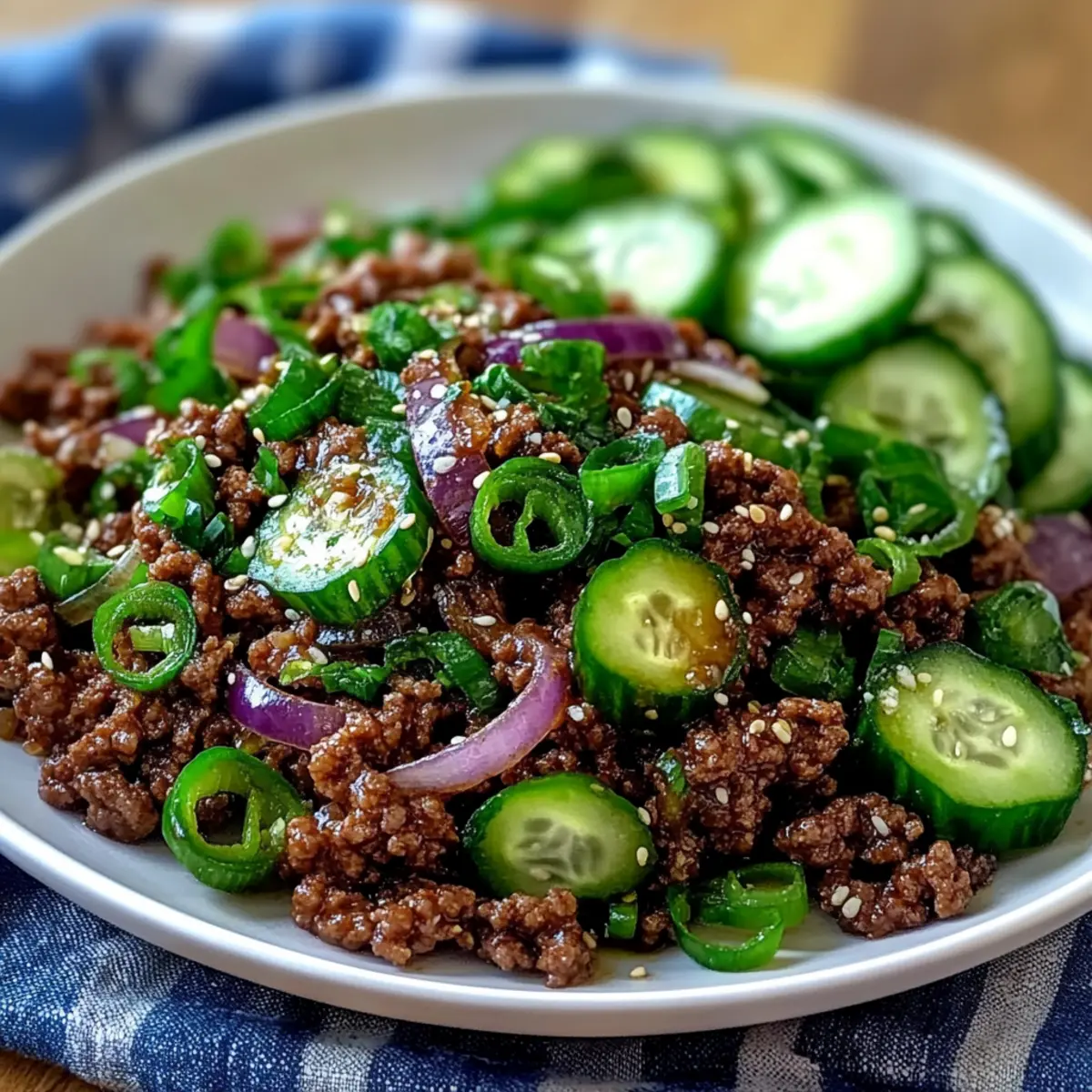 Just the other day, I found myself in a mild panic—what to whip up for dinner that wouldn’t take hours? Enter my Quick and Spicy Korean Ground Beef with Cucumber Salad. This recipe is a total game-changer, delivering a whirlwind of savory flavors paired with a refreshing crunch that brings life to any busy weeknight. In just 25 minutes, you can serve up a healthy meal that’s not only delicious but also perfect for impressing guests. Imagine cozying up with a satisfying dish that leaves you feeling nourished without the guilt. Plus, it’s low-carb and can easily be meal-prepped for those frenetic days ahead. Are you ready to spice up your dinner routine? Let’s dive in!