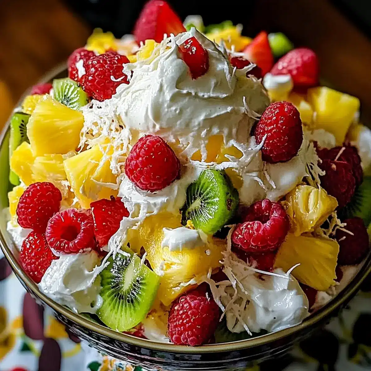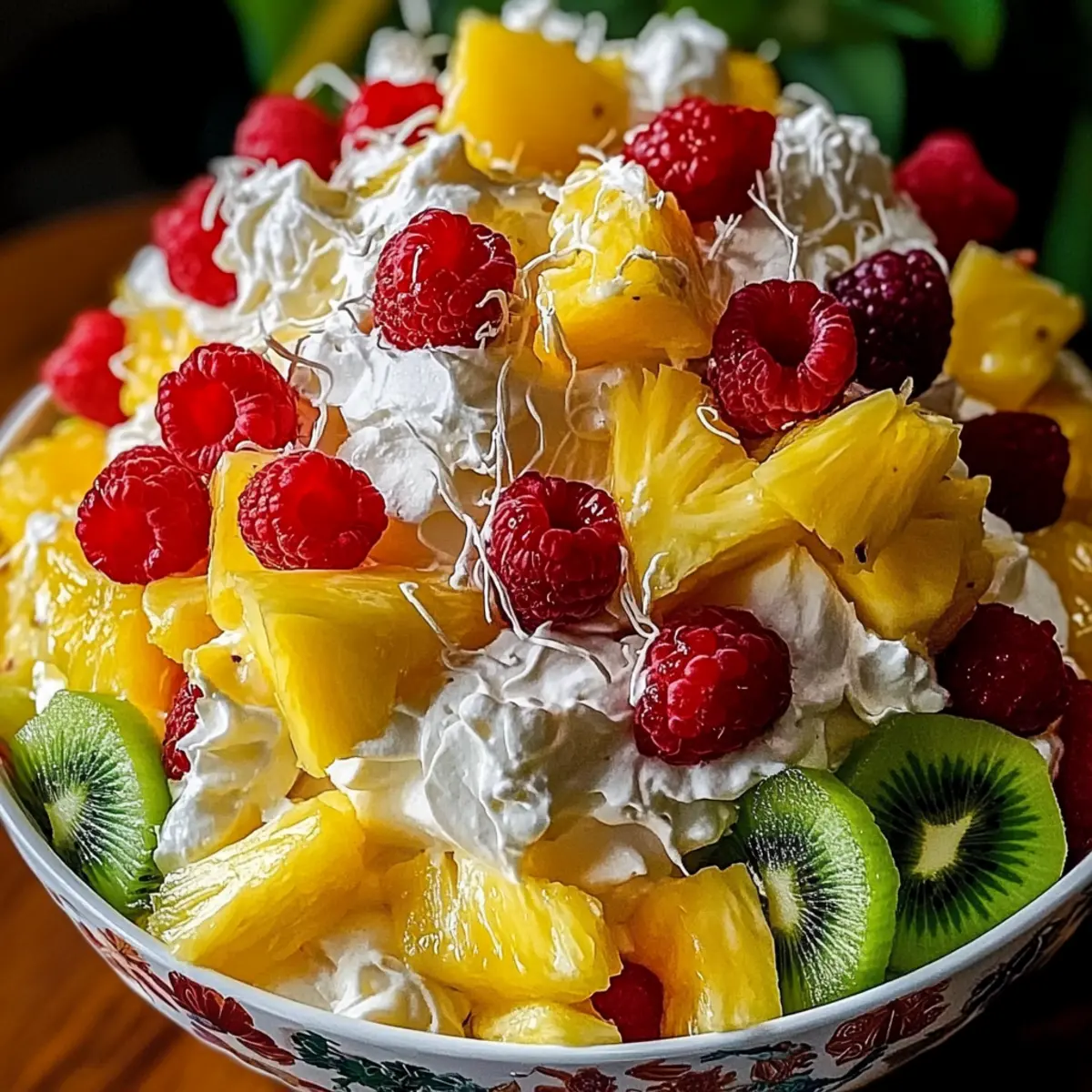 Absolutely! While the classic recipe includes pineapple, strawberries, kiwi, and raspberries, feel free to get creative with other seasonal fruits. Mango, blueberries, or even bananas (added just before serving to prevent browning) can elevate your salad and add unique flavors.