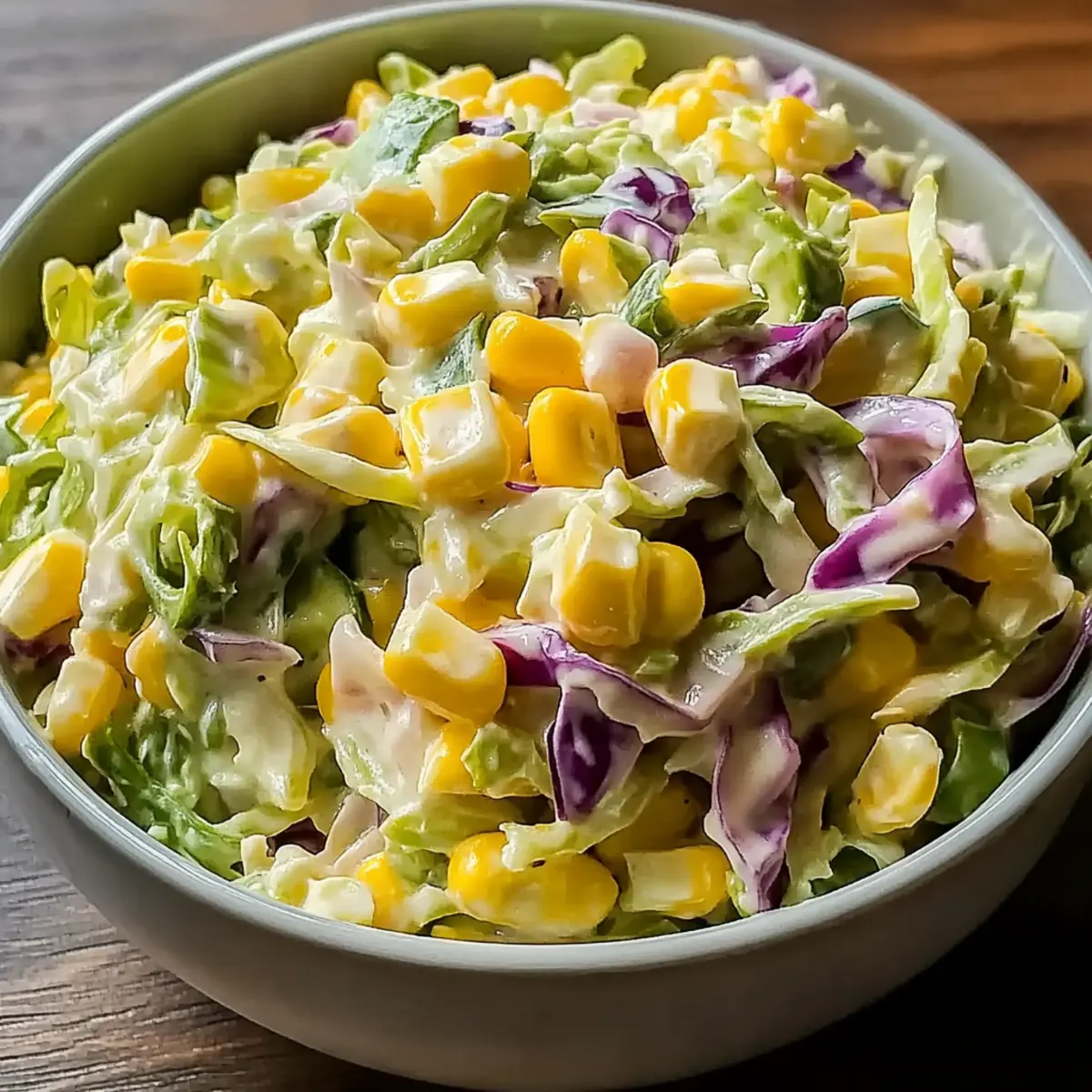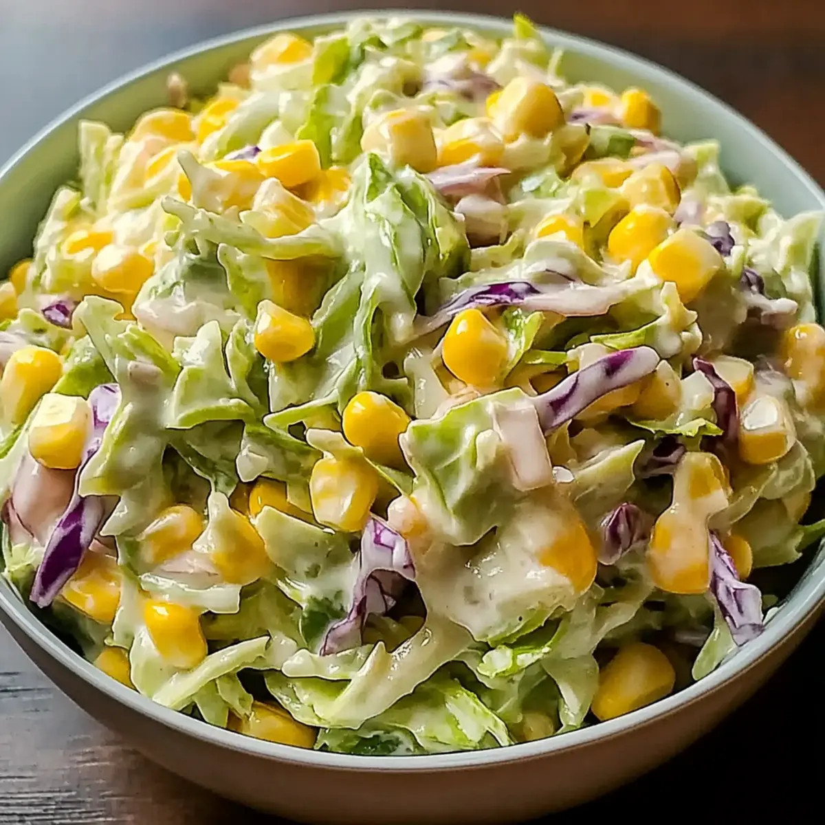 - Fold the dressing into the cabbage and corn mixture until every piece is coated.