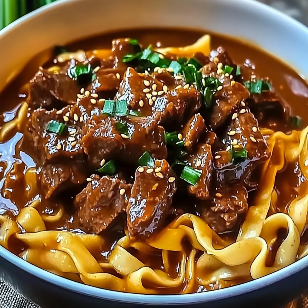 Ladle the comforting Korean Beef Noodles into bowls, making sure to include both beef and noodles in each serving. Garnish with chopped green onions, a sprinkle of sesame seeds, and fresh cilantro for a burst of flavor and color. This dish is best enjoyed warm, bringing coziness to your meal and making it a delight for everyone at the table.