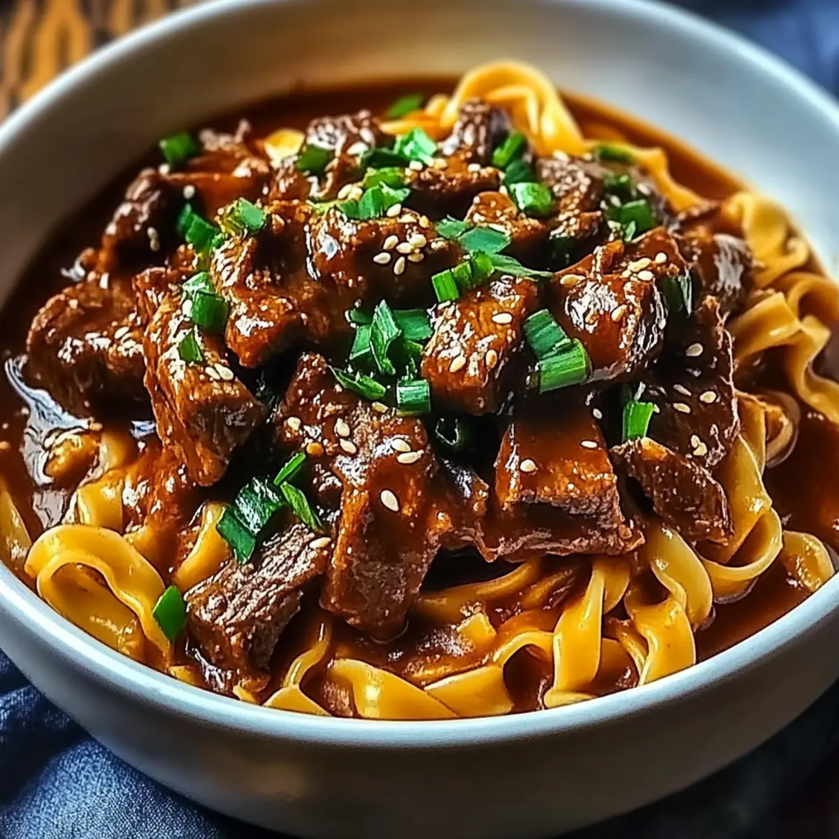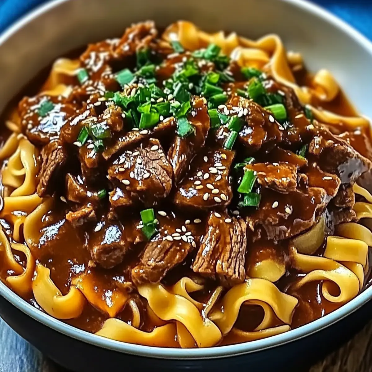 - Combine: After the beef is tender, add noodles to the slow cooker and toss gently to coat.