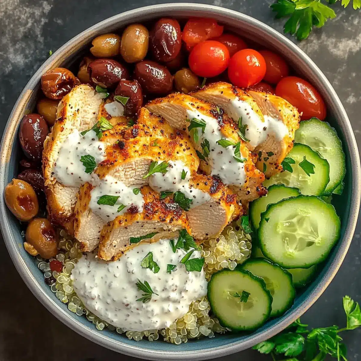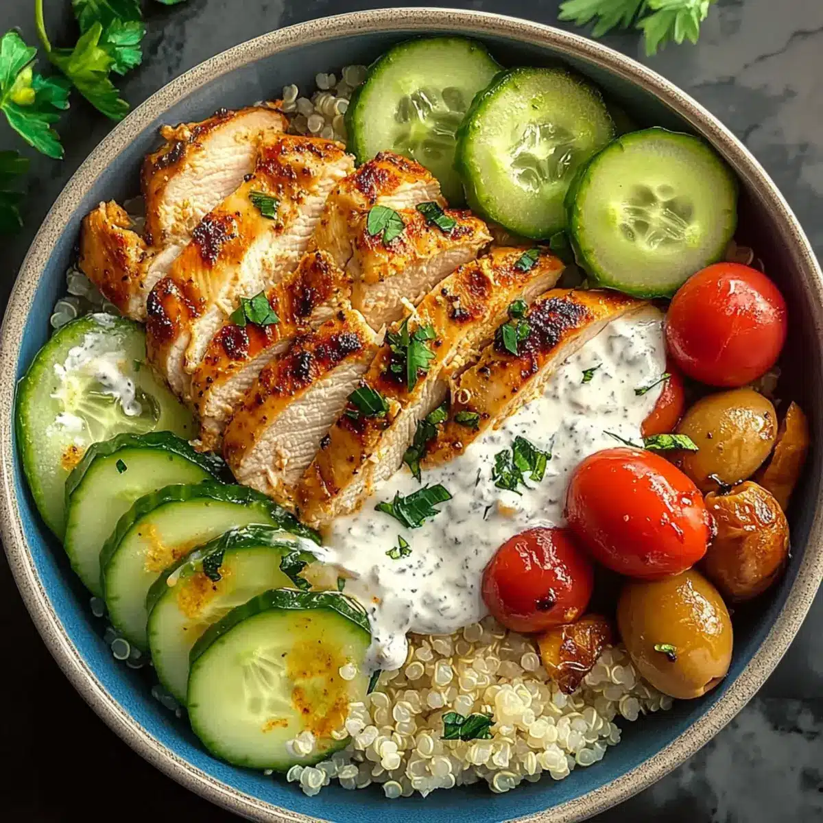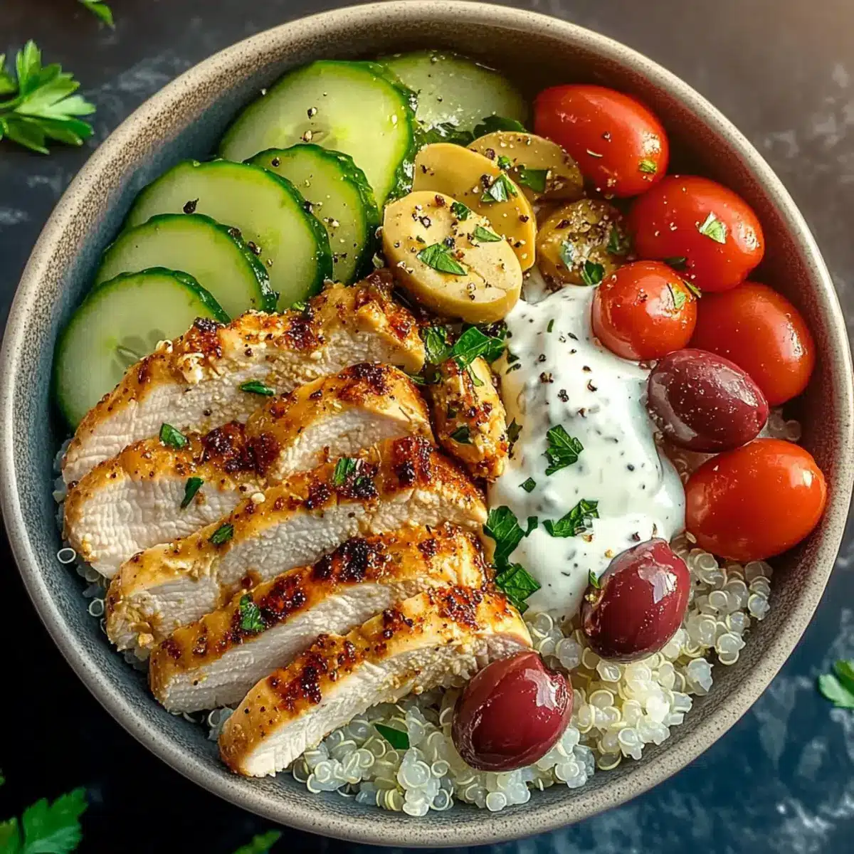 Dive into this delightful Mediterranean Chicken Bowl with its vibrant colors and wholesome ingredients, and let your taste buds embark on a delicious adventure!