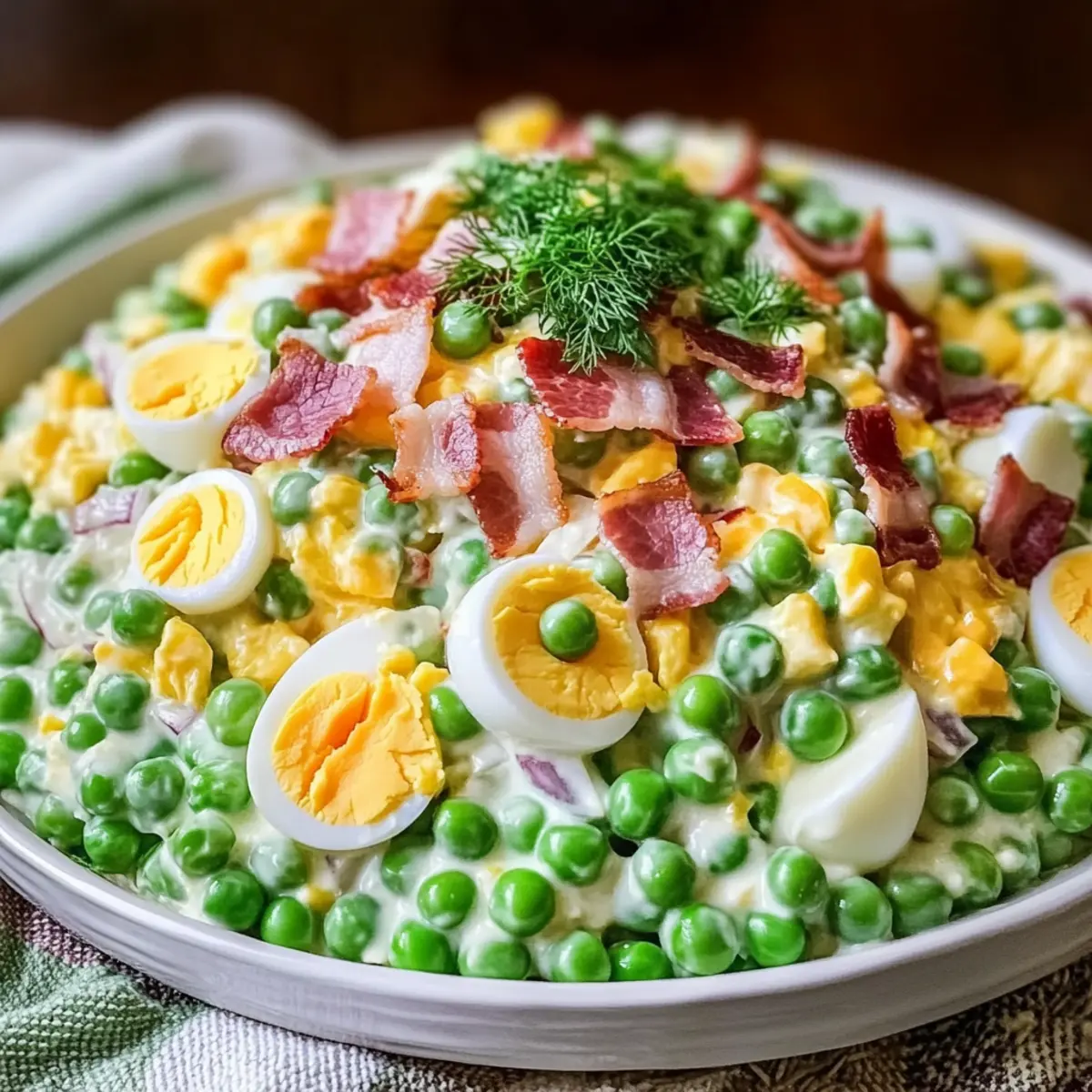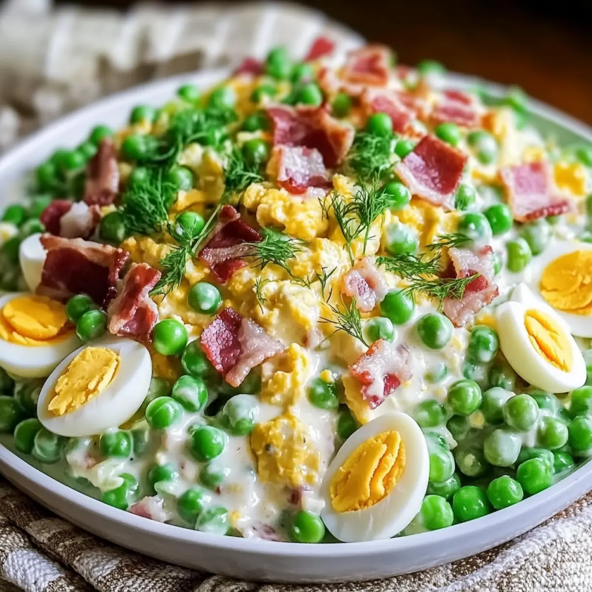 Creamy & Crunchy: The rich dressing perfectly balances the crisp peas and crunchy bacon bits, creating a delightful texture that’s hard to resist.