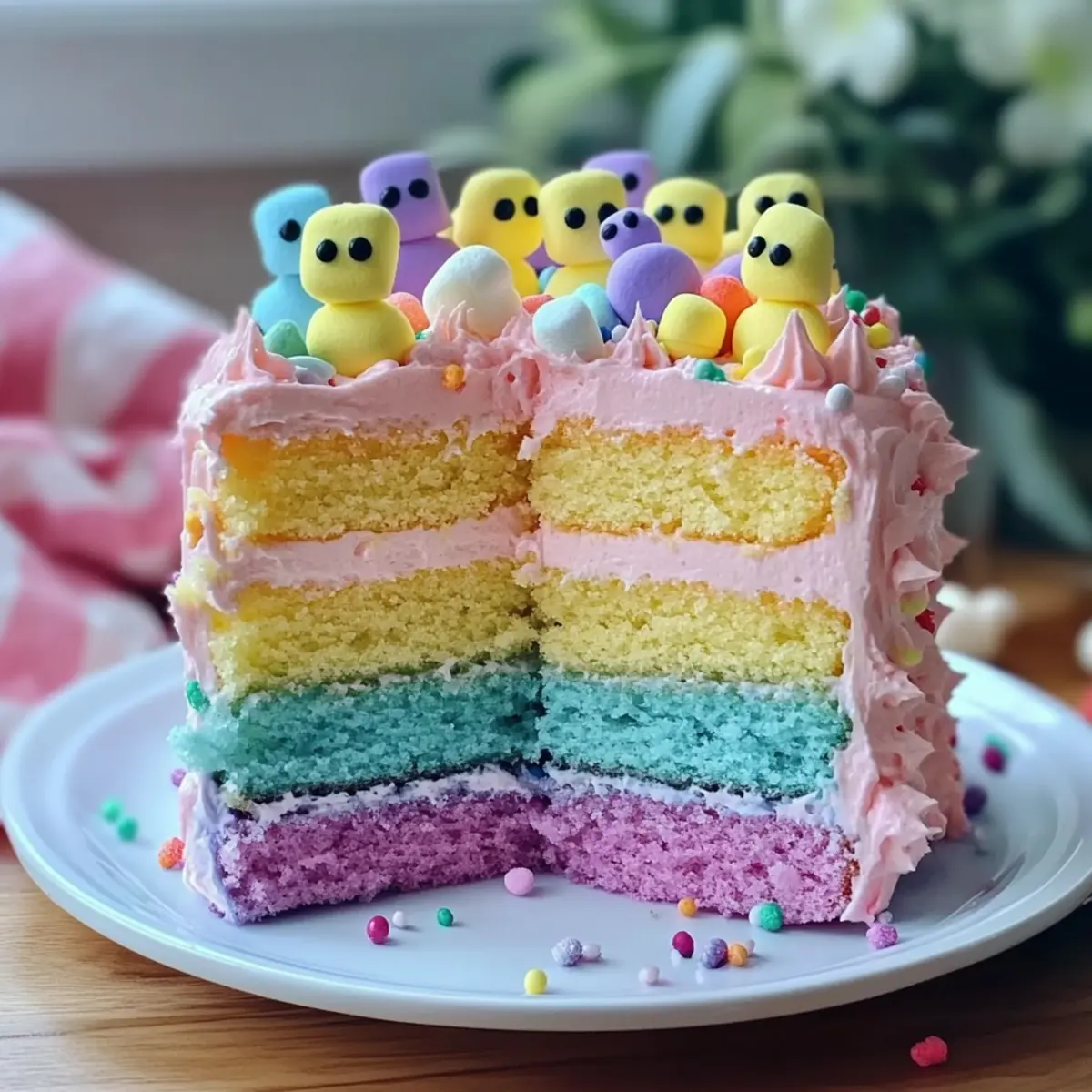 This Peep Cake with Multi-Colored Layers is not only a visual treat but also a delicious centerpiece for any Easter celebration!