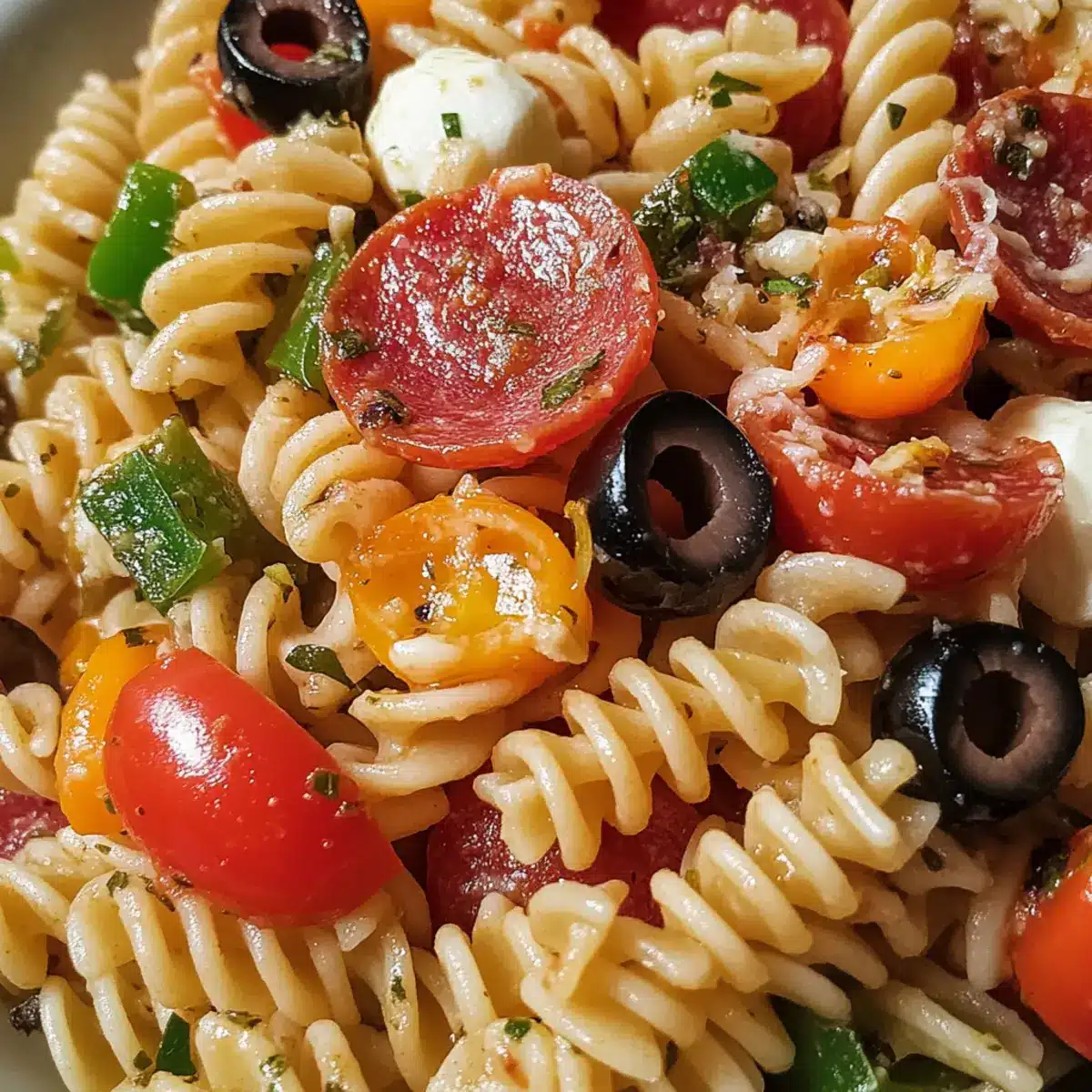 Nothing beats the excitement of a colorful summer gathering, especially when it includes food that makes people smile. Today, I’m thrilled to share my Pizza Pasta Salad recipe, which effortlessly captures the beloved flavors of pizza in a fresh and delightful way. This easy recipe comes together in just 15 minutes, making it a perfect option for busy weeknights or impromptu picnics. With its adaptable ingredients, you can customize this dish to suit your taste while still delivering that irresistible comfort food vibe. Whether you’re serving it as a light main course or a vibrant side at your next gathering, you’re bound to get requests for seconds. Are you ready to dig into this delicious twist on a classic?