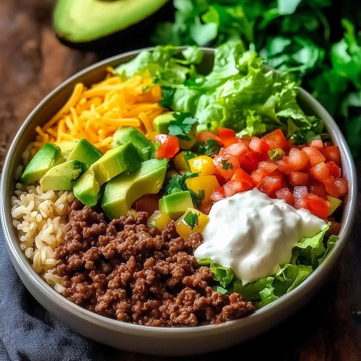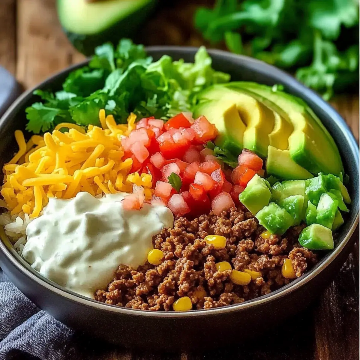These vibrant additions create a beautiful medley of colors and tastes that elevate your taco bowl experience.