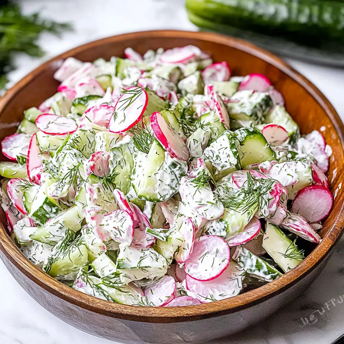 Very! If you happen to add too much yogurt, don’t fret! Simply add a little more salt, pepper, or a squeeze of lemon juice to balance it out. You can also mix in some extra diced cucumbers or radishes, which will not only dilute the yogurt but offer additional crunch and freshness to your creamy cucumber radish salad.