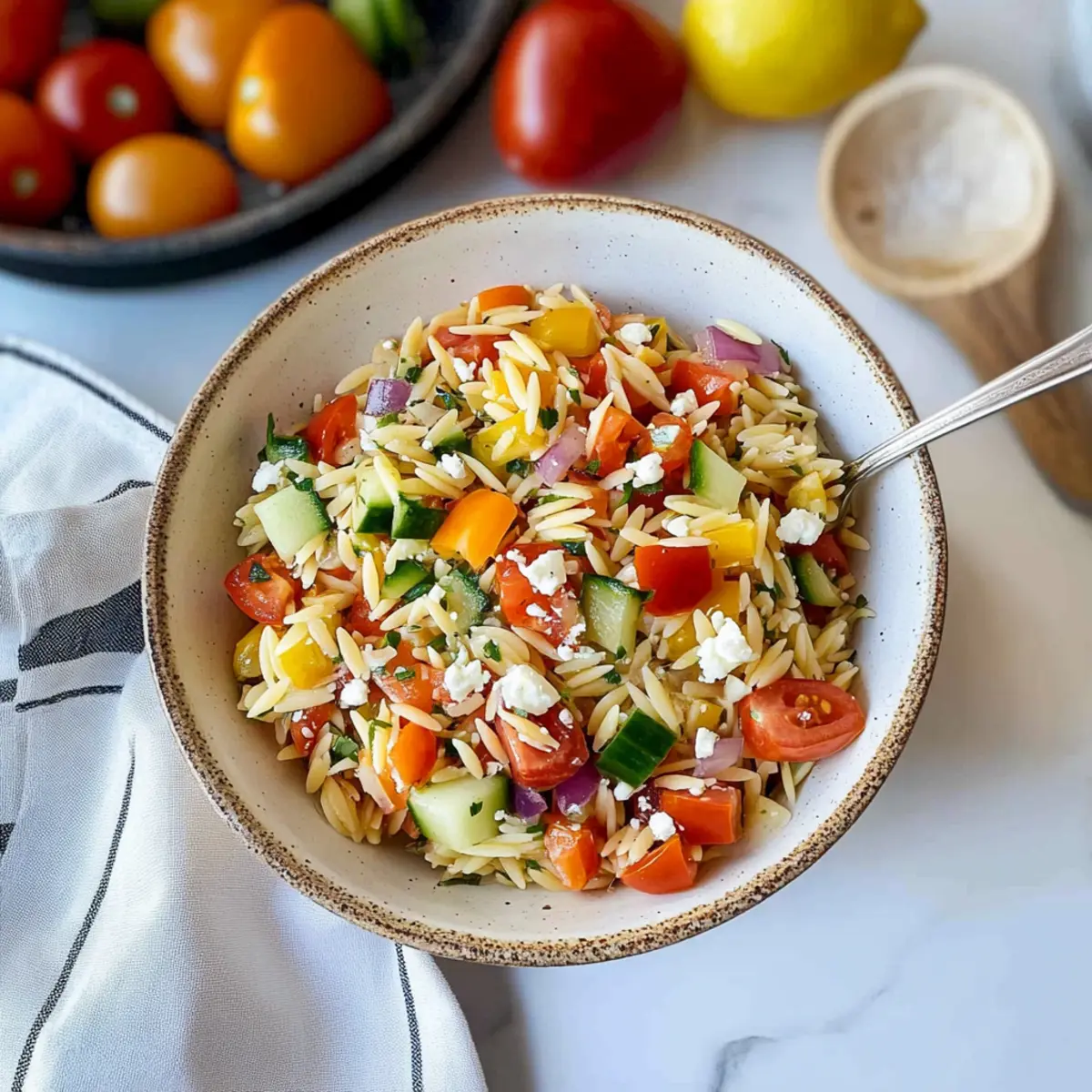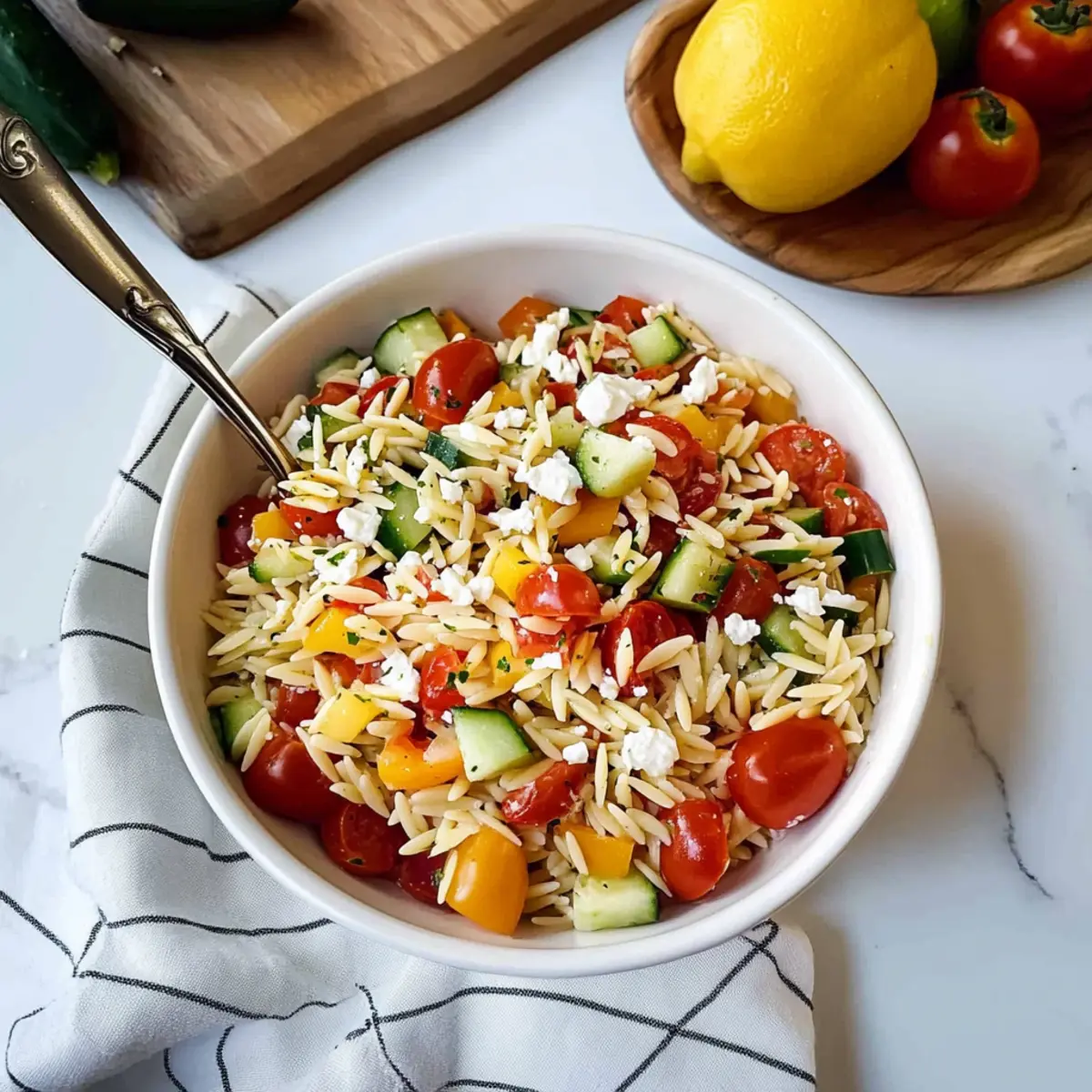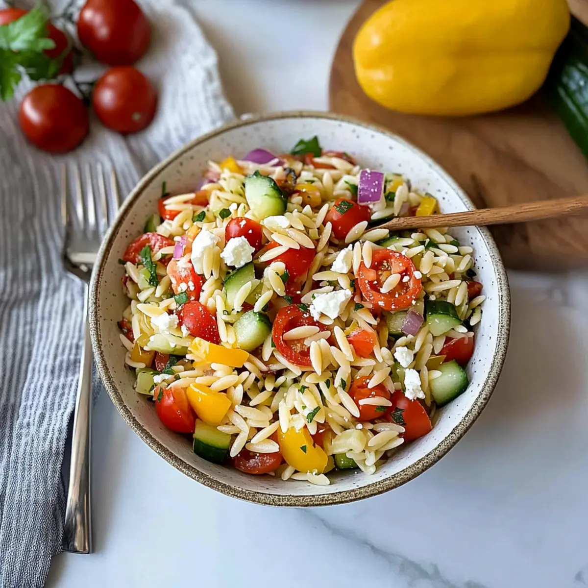 Cool First: Let the orzo cool completely before mixing it with the veggies. This keeps the salad crisp and refreshing.