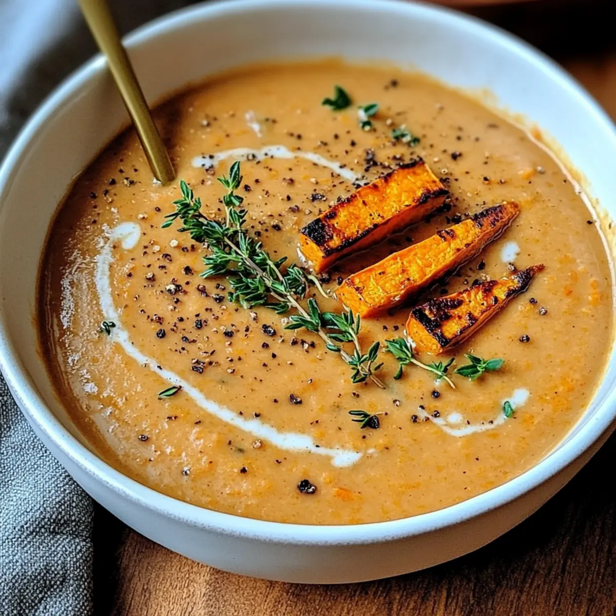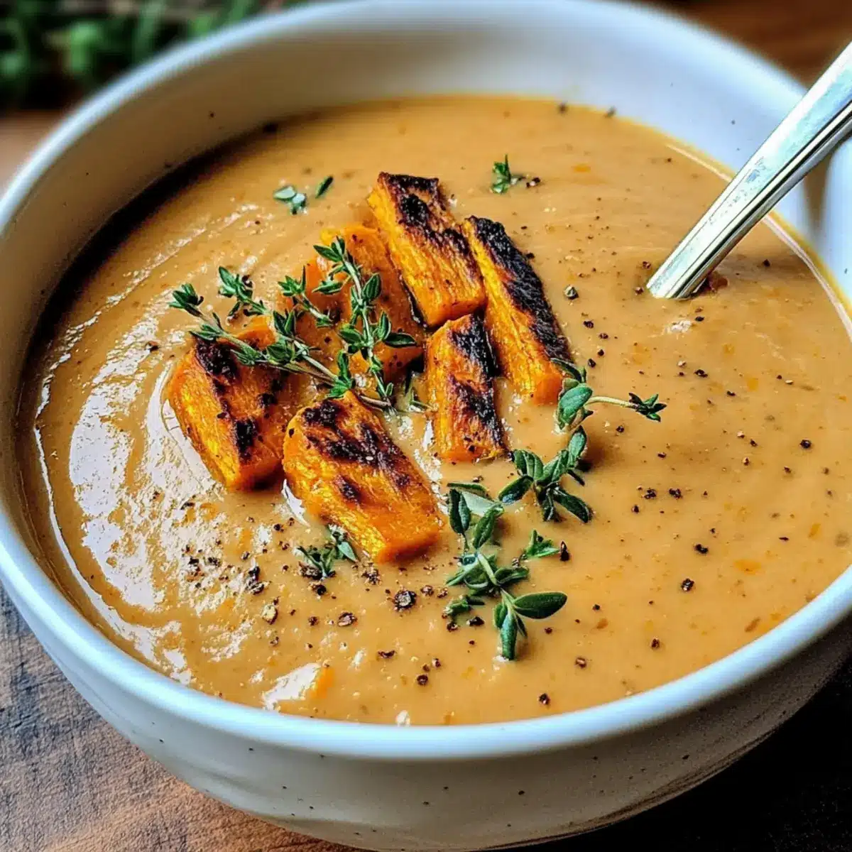 Heartwarming Comfort: This Creamy Roasted Sweet Potato Soup transforms your chilly evening into a cozy retreat with every spoonful.