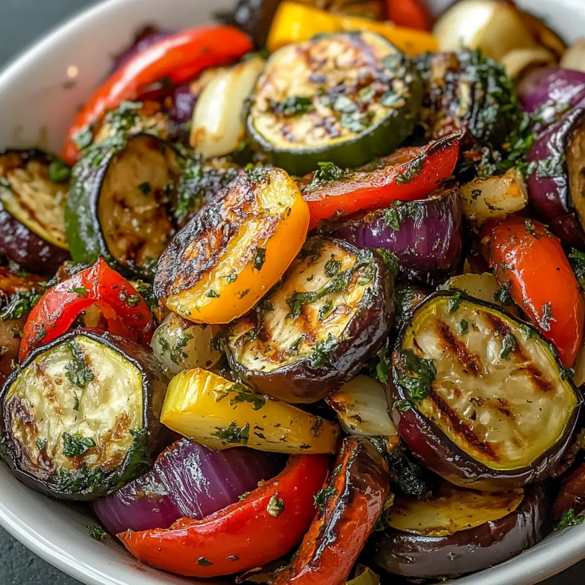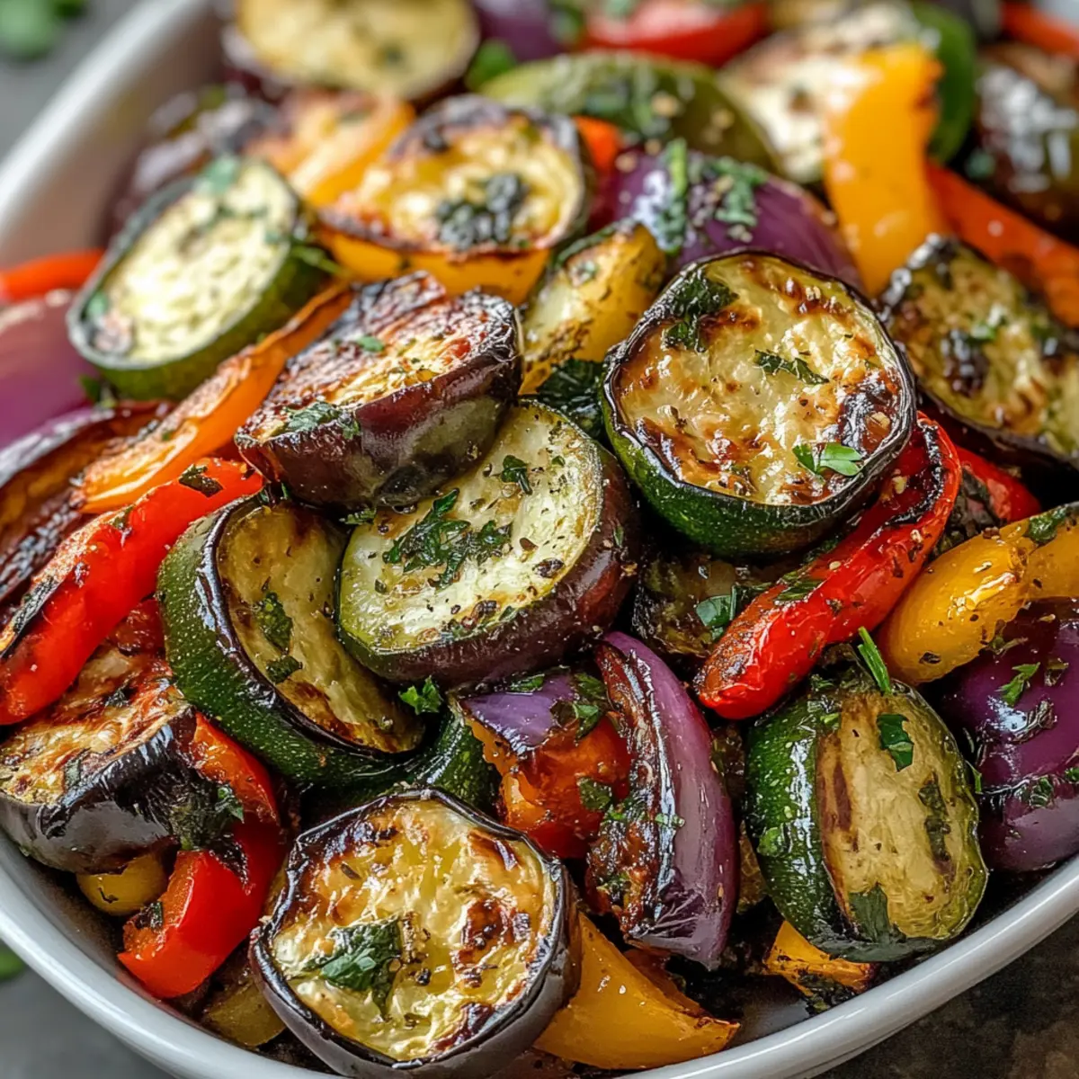 Absolutely! The stars of this Roasted Mediterranean Greek Vegetables dish are eggplant, bell peppers, zucchini, and onions. I suggest using fresh, vibrant veggies—look for firm textures and bright colors. If you notice any dark spots or wrinkling, those vegetables might not be at their best. Feel free to mix in seasonal veggies like carrots or Brussels sprouts for added variety!