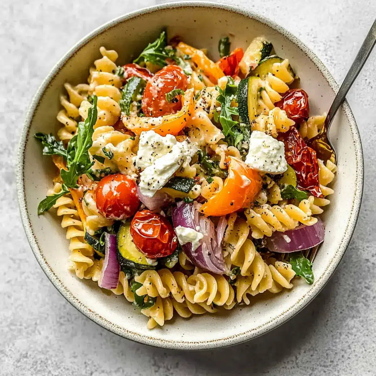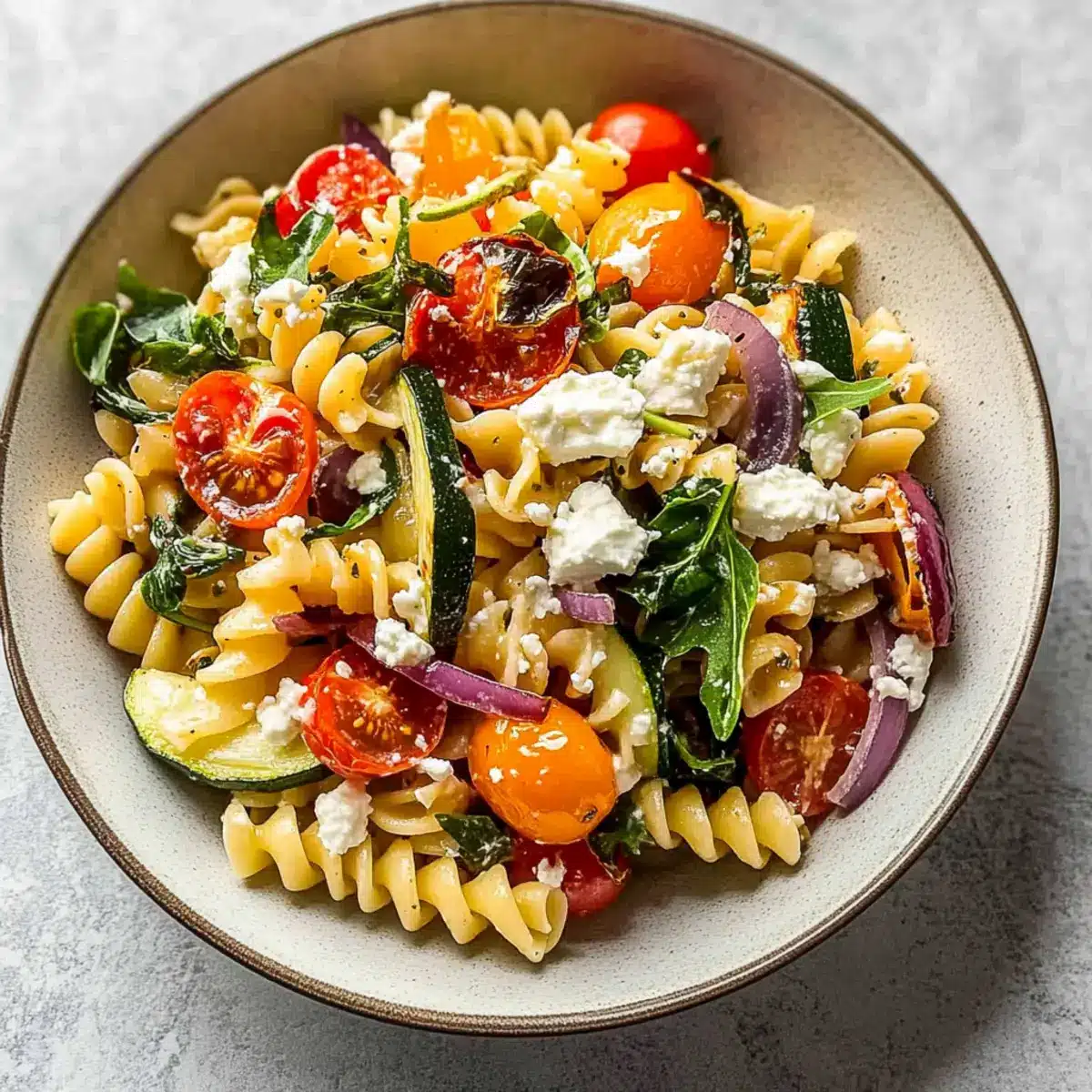 Absolutely! Since this recipe features feta cheese, individuals with dairy allergies should avoid it, or consider using alternatives like vegan cheese. Additionally, ensure that any vegetables included are pet-friendly if you plan to share leftovers. For gluten-free options, substitute the fusilli pasta with chickpea or rice-based pasta to enjoy this delicious dish without worry.