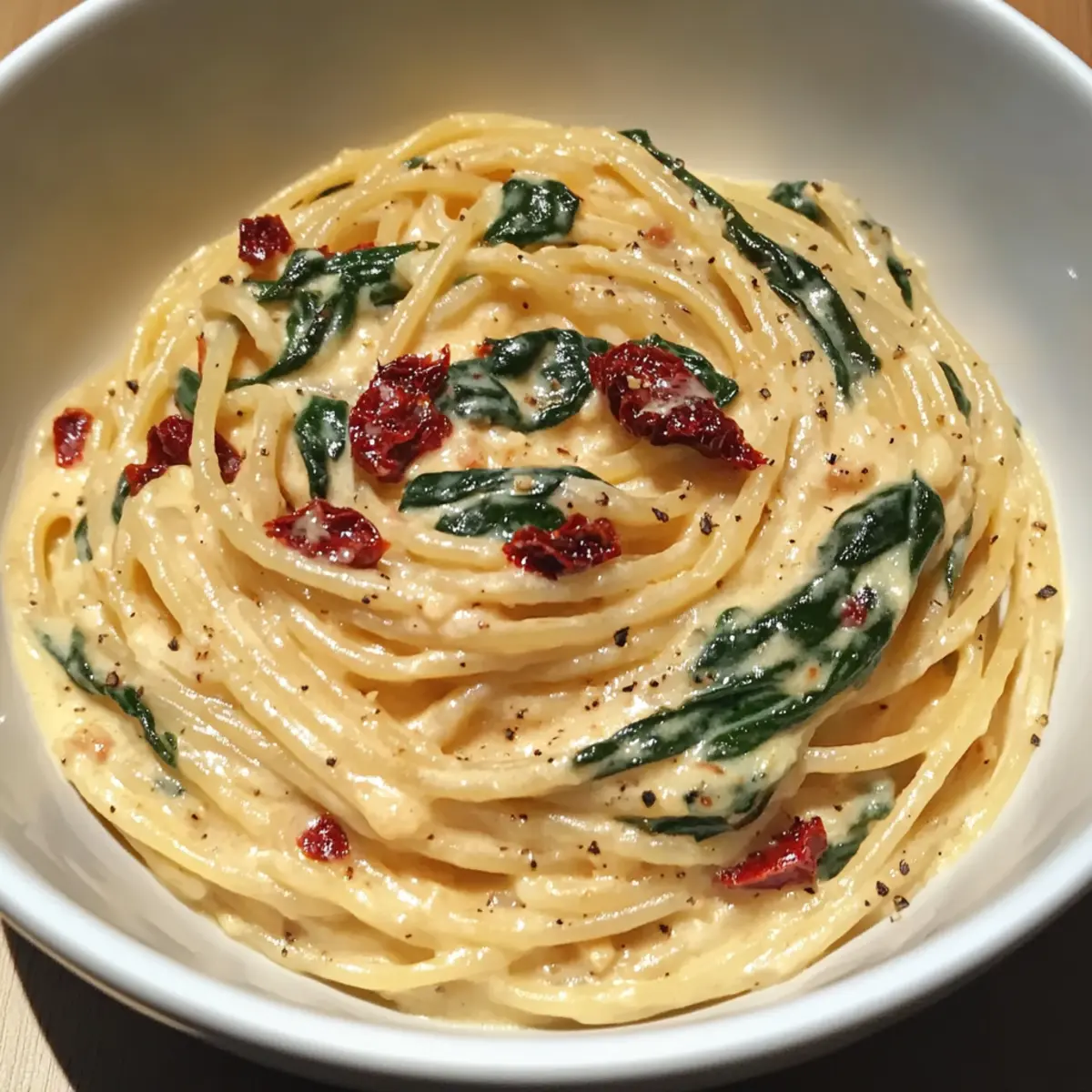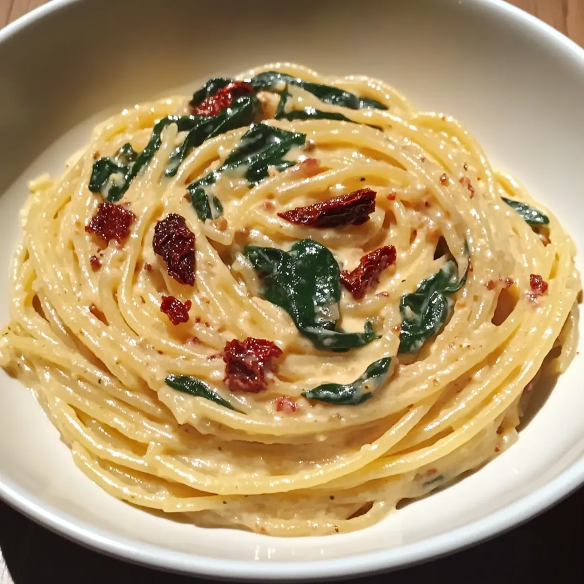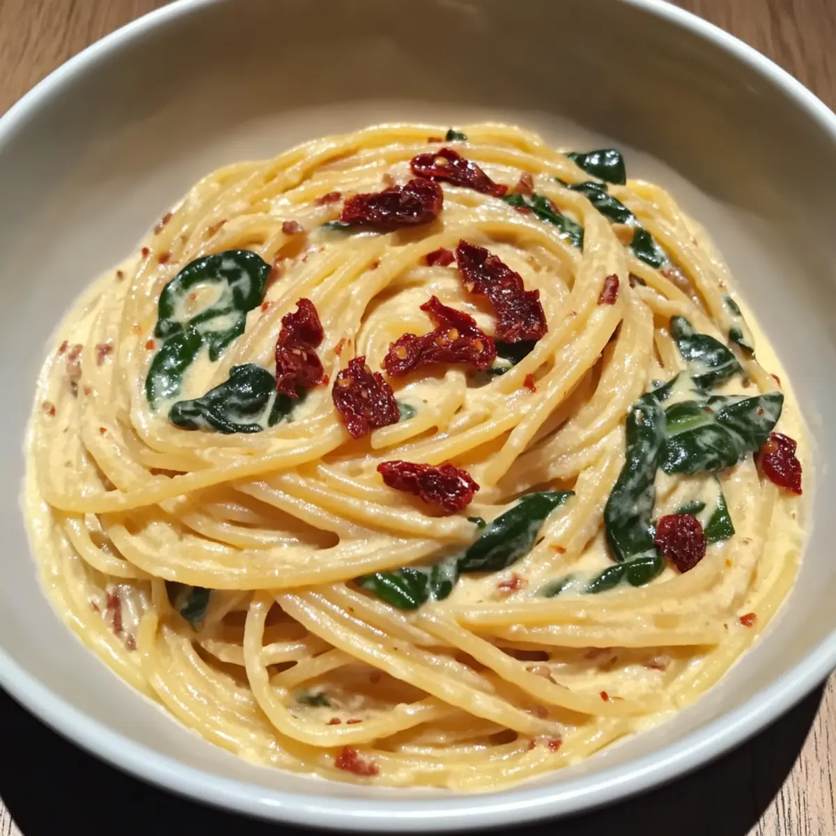 Creamy Spaghetti & Spinach with Sun-Dried Tomato Magic