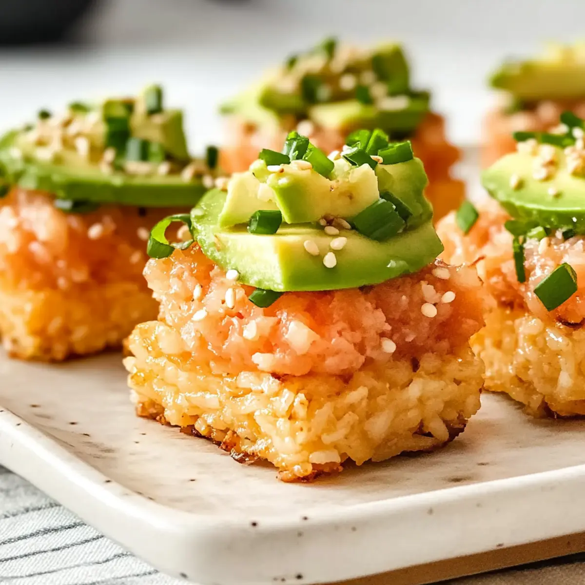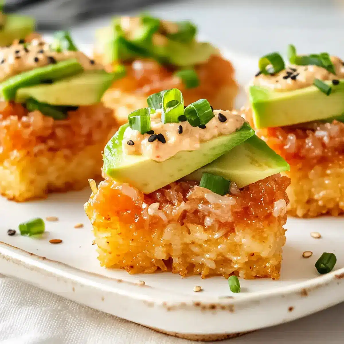 • Garnish Wisely: Layering fresh ingredients like avocado on top not only enhances flavor but also adds a beautiful presentation to your spicy tuna crispy rice.