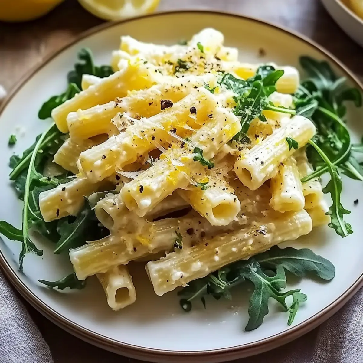 Simplicity at its finest: With just a few ingredients and minimal prep, you can whip up a gourmet dish in no time. Vibrant flavors shine through: The balance of creamy ricotta and zesty lemon perfectly complements the peppery arugula. Versatile for all occasions: Whether it’s a casual weeknight dinner or a special gathering, this recipe suits any mood. Crowd-pleaser guaranteed: It’s vegetarian-friendly and echoes the beloved Italian spirit, making it a hit with family and friends. For a delightful pairing, serve with a refreshing Pasta Salad Bliss, and enjoy the cheers around the table!