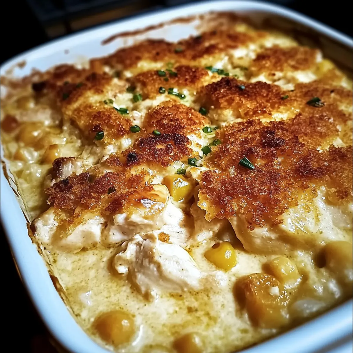 - Carefully transfer the creamy chicken mixture into the greased casserole dish and spread it evenly.